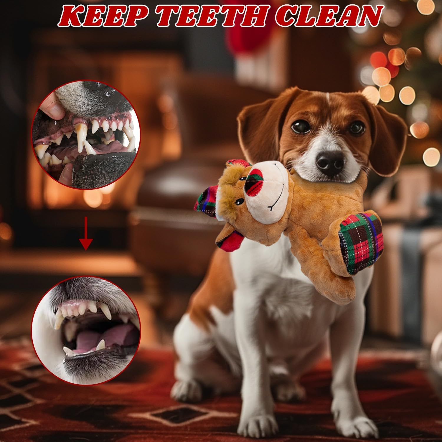 - 【Squeaky & Crinkle Paper】: The Christmas dog toy has a built-in sound device, which will squeak when squeezed and bitten. Bear's ears and tail made of crinkle paper that providing extra fun. Can be used to hold your dog's attention and help release your pet's anxiety and stress, thereby reducing their destructive behavior.