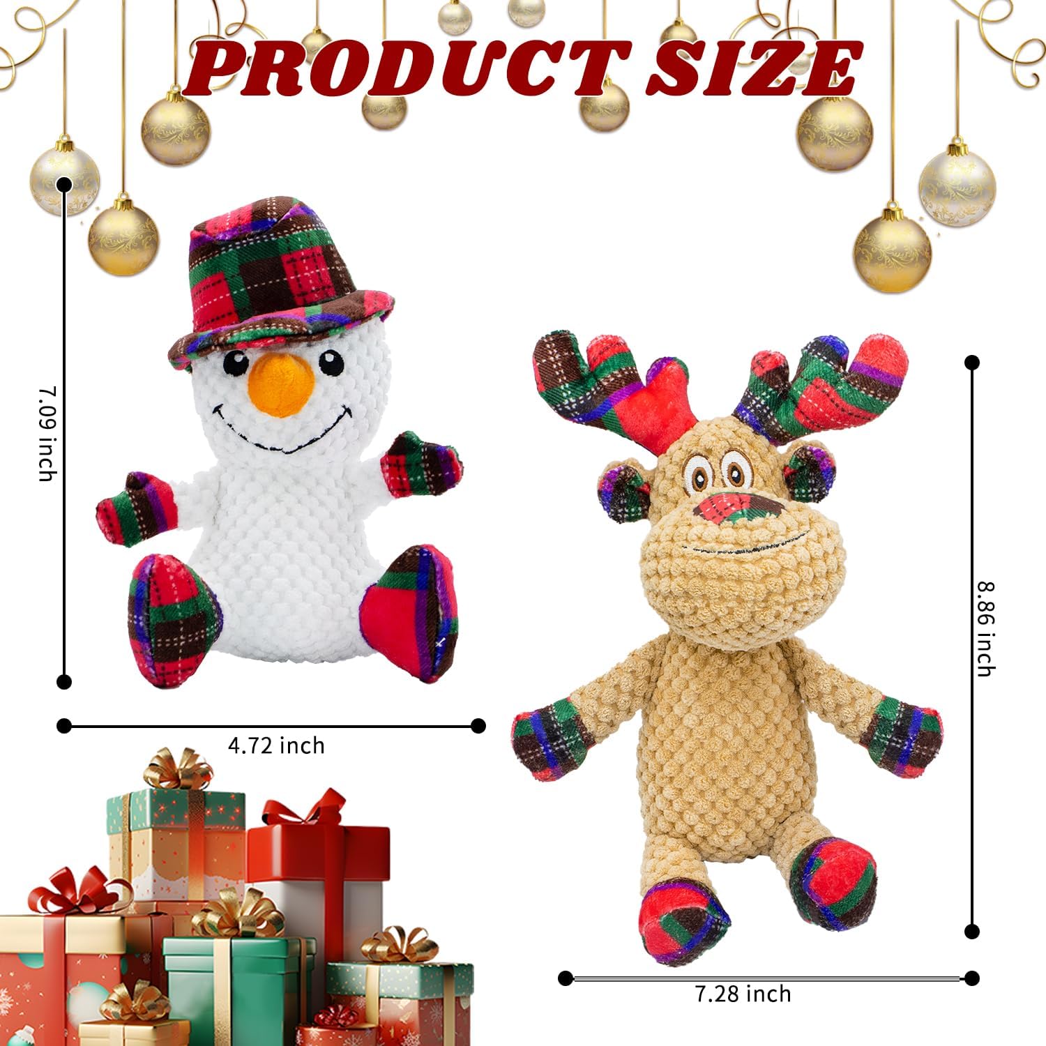 Dog Christmas Snowman and Reindeer Toy With Squeaker, 2 Pack With Crinkle Paper, Soft Pet Chew for Teeth, Interactive Plush for Small & Medium Dogs