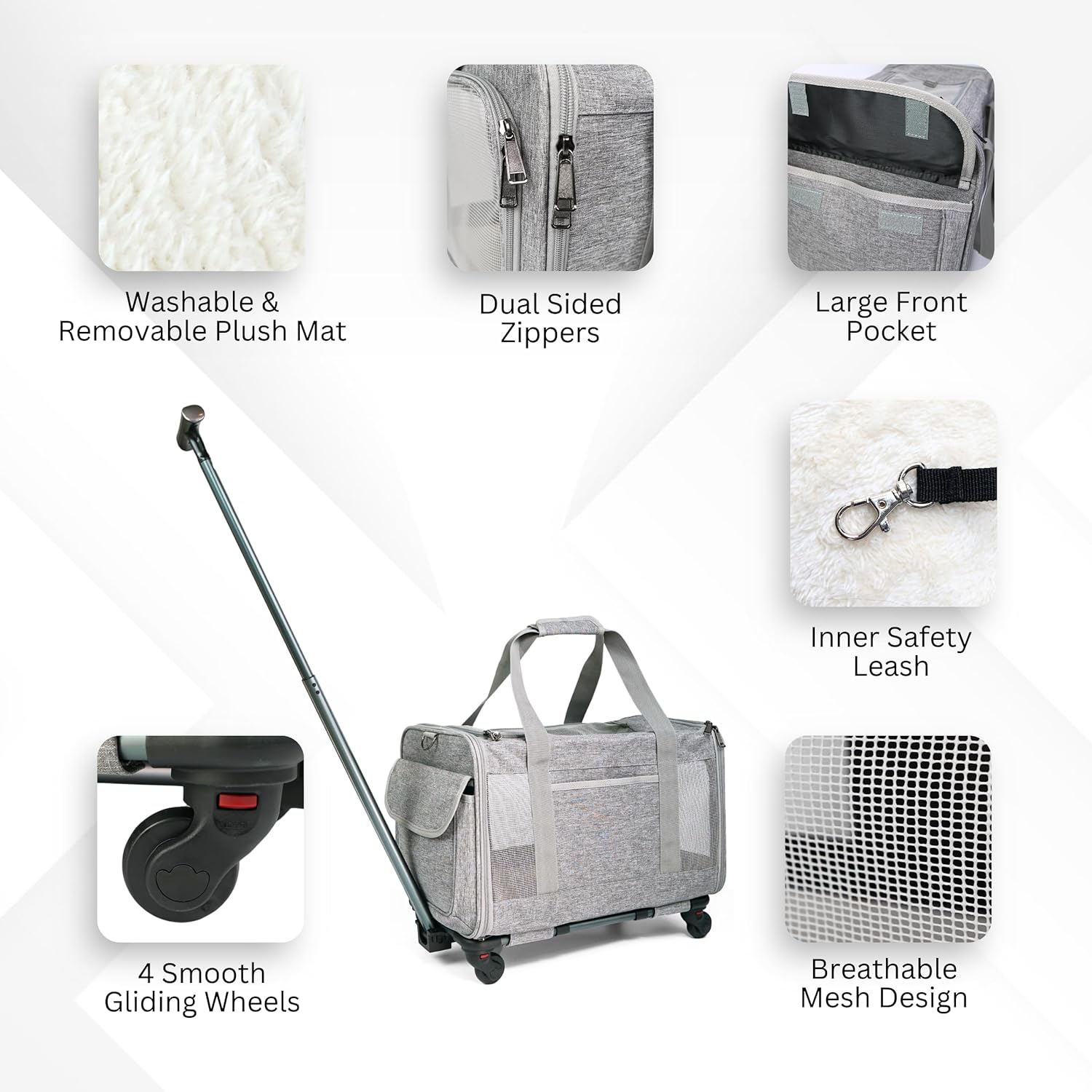 - ✅ Triple Mobility Options - Check Final Height: Detachable spinner wheels and telescopic handle make airport navigation effortless. Switch between wheeling, shoulder carrying, or hand-carrying as needed. Important: measure carrier height with wheels against your airline's requirements before travel.