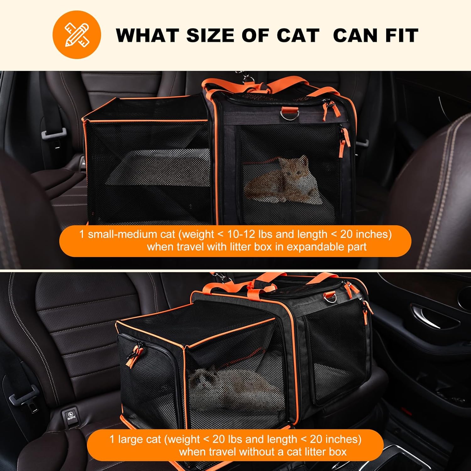 20 x 14 x 14 Expandable cat car Travel Carrier for 1 Small-Medium cat,with a Portable Leakproof Small cat Litter Box