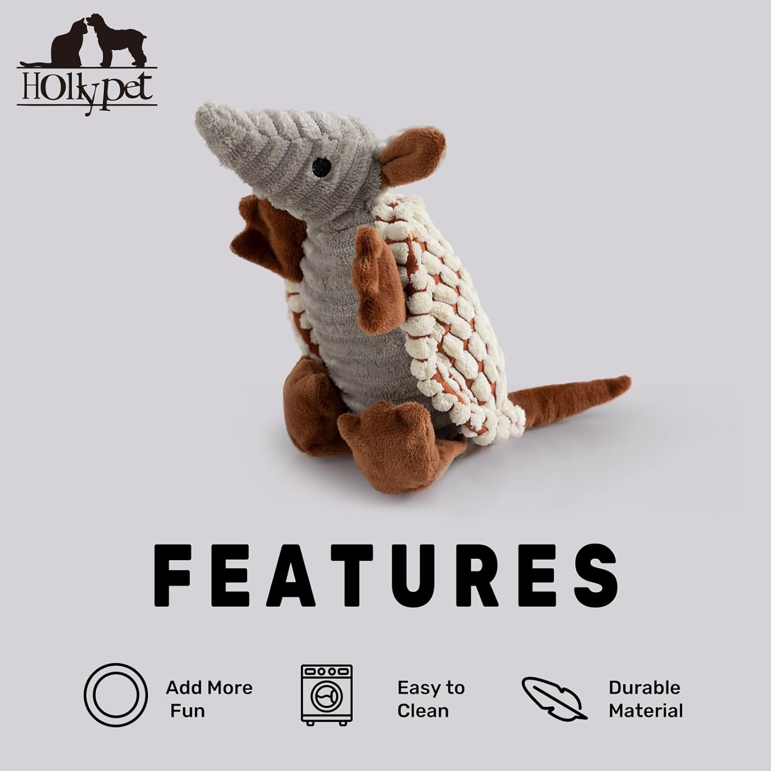 - Unique Sound - Hollypet Armadillo Squeak Toys (except 6 inch) make a sound that's not high pitched, but rather a unique and funny grunt sound that your furry friend will love. Unlike noisy bones, ropes, or other normal stuffed plush dog toys