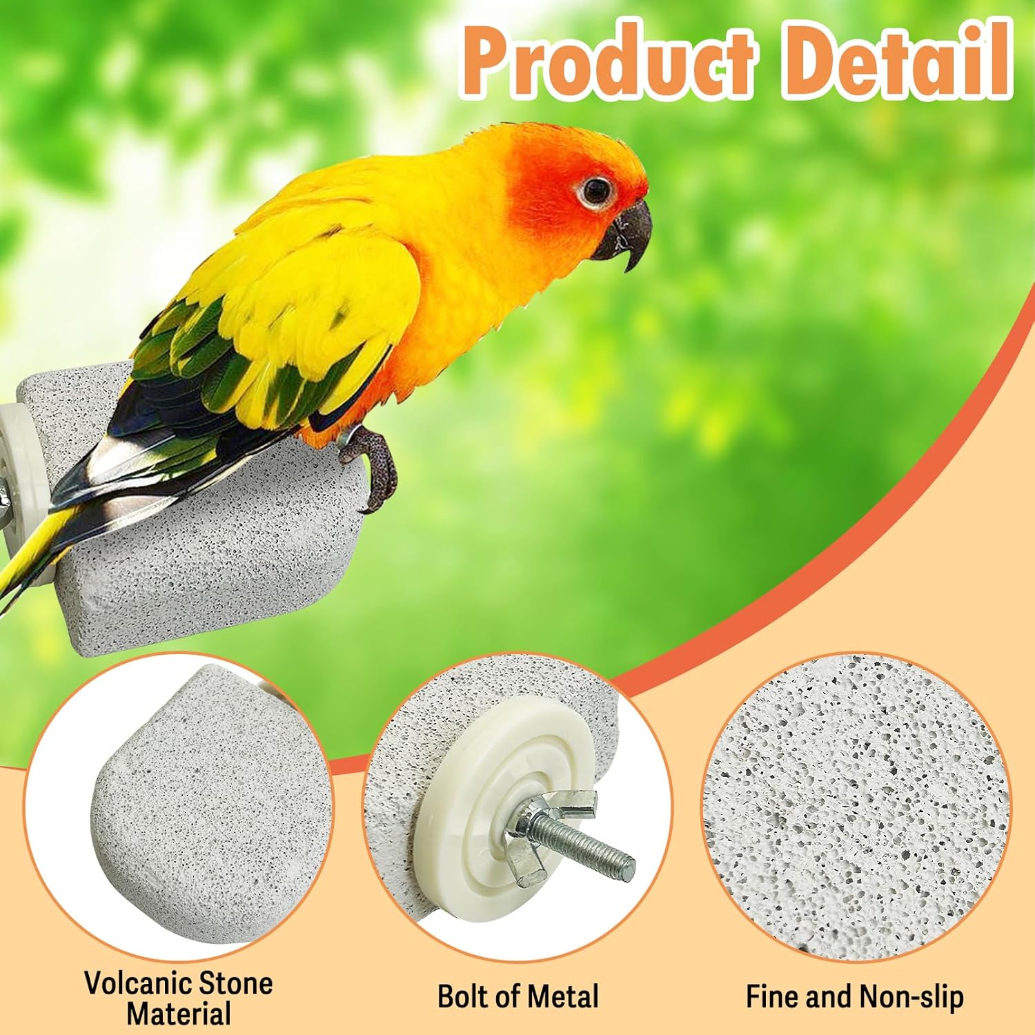 - Volcanic Stone Material: Our bird perches are different from other ordinary wooden bird station poles, we use a variety of mineral stones made of food-grade materials. This bird cage grinding platform is free of paint and chemical odor, which is safer and more durable to meet the needs of birds to chew on it