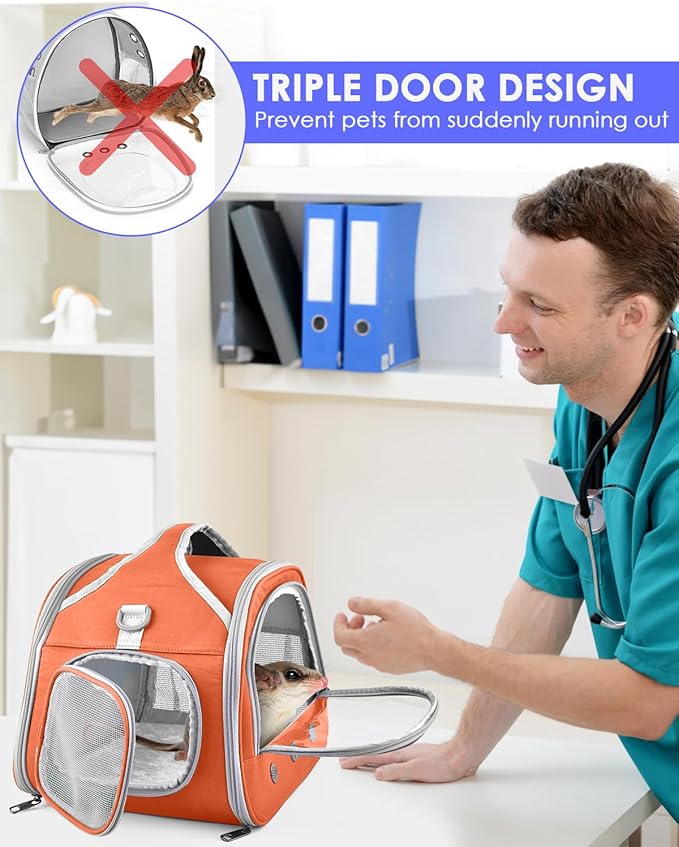 - Unique Design: Transparent front window design lizards carrier, meet with that pets like to pay close attention to the surrounding environment, and allows you to see small animals everything inside the handbag. The transparent window is separated from the bottom of the zipper, and add a side door making it easier and safer for pets to enter and exit