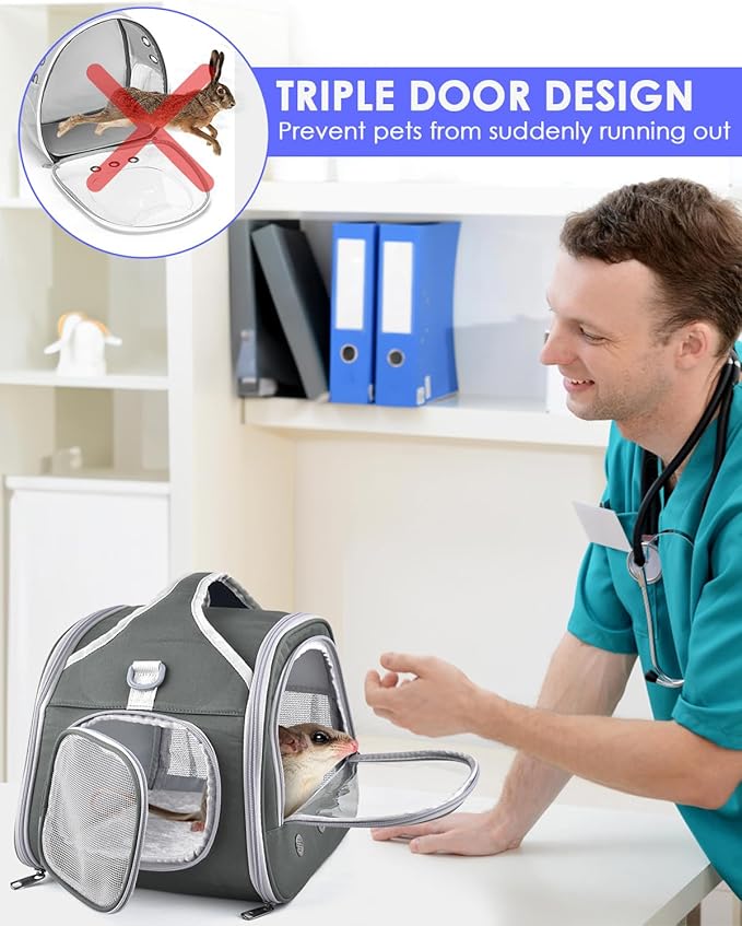 - Unique Design: Transparent front window design lizards carrier, meet with that pets like to pay close attention to the surrounding environment, and allows you to see small animals everything inside the handbag. The transparent window is separated from the bottom of the zipper, and add a side door making it easier and safer for pets to enter and exit