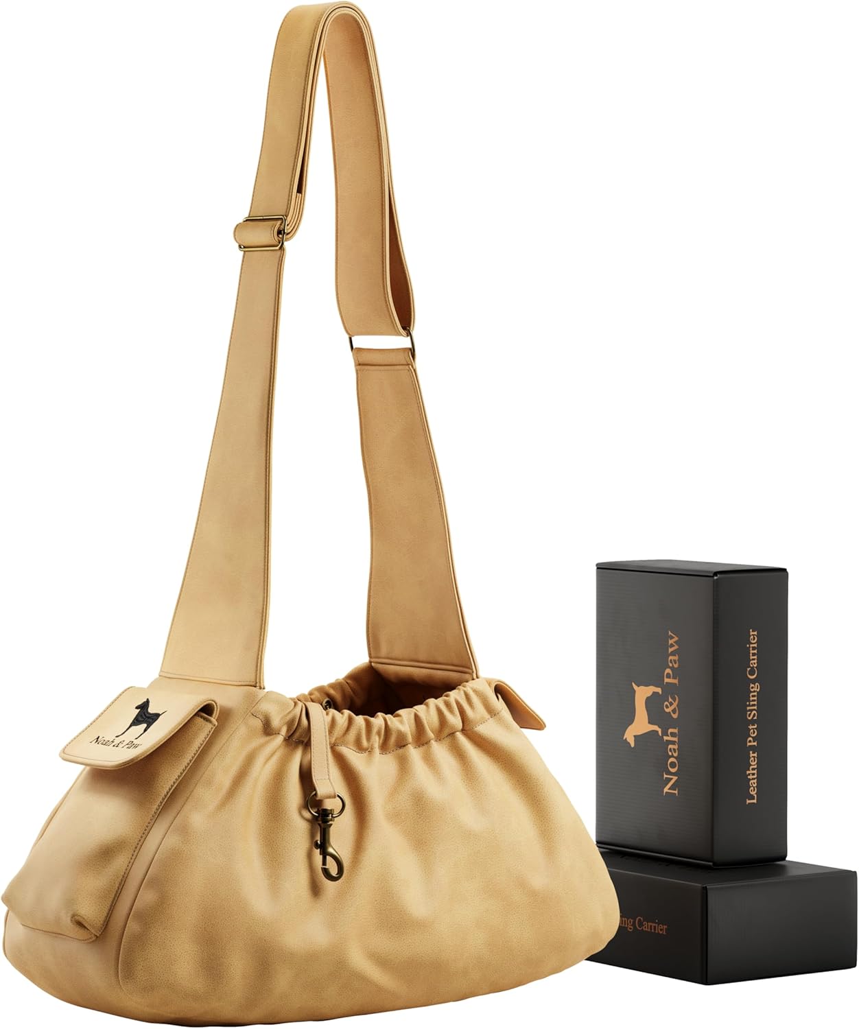 Noah & Paw Dog Sling Carrier for Small Dogs 5-18lb, Dog Sling for Small Dogs and Cats, Dog Carrier with Adjustable Padded Strap, Vegan Leather Lined with Fur, Double Safety Feature, Machine Washable
