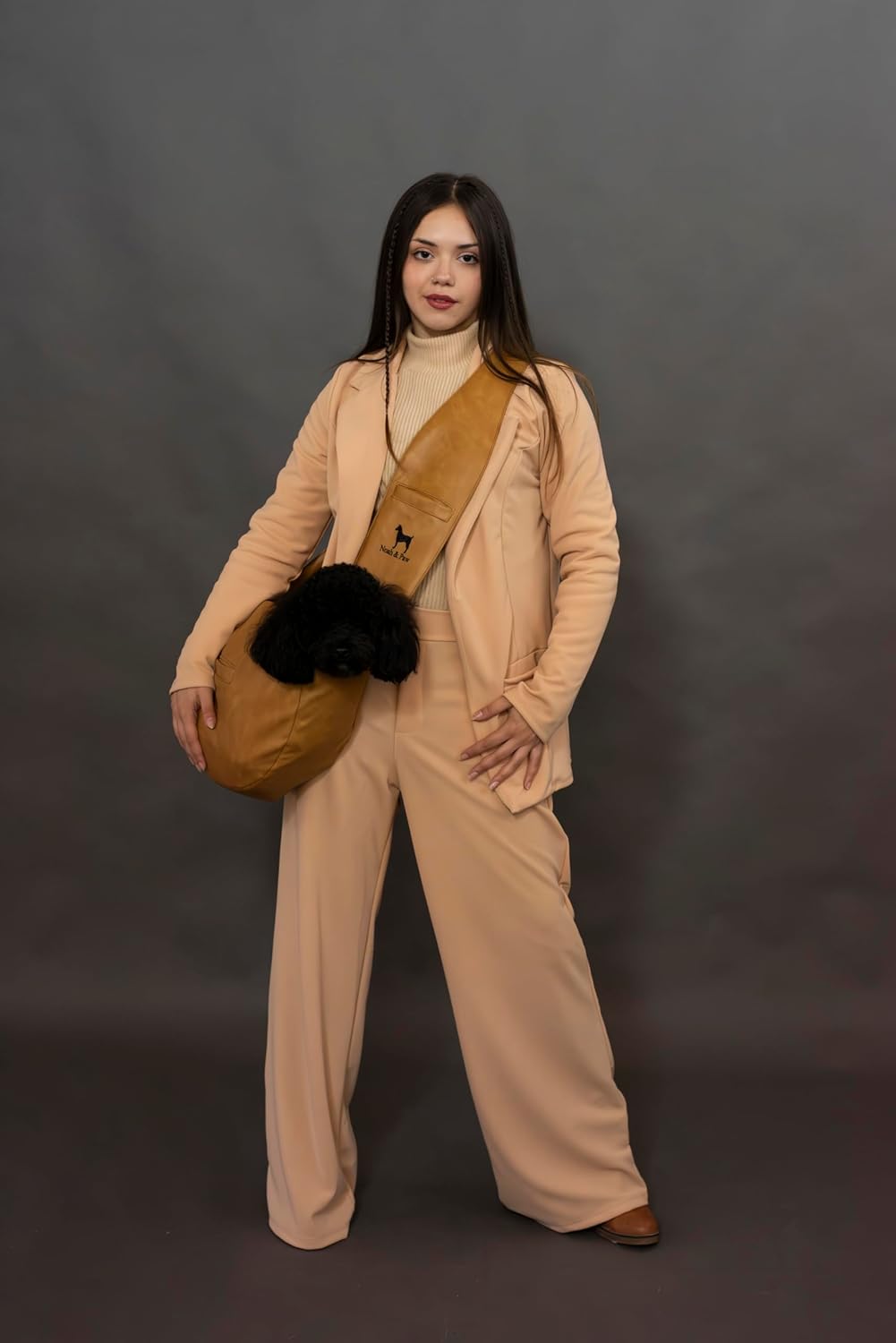 - Luxury dog sling carrier, fashioned from top-tier vegan leather. Designed with your convenience in mind, made with washable materials. This dog sling carrier combines style and practicality, to meet all your expectations.