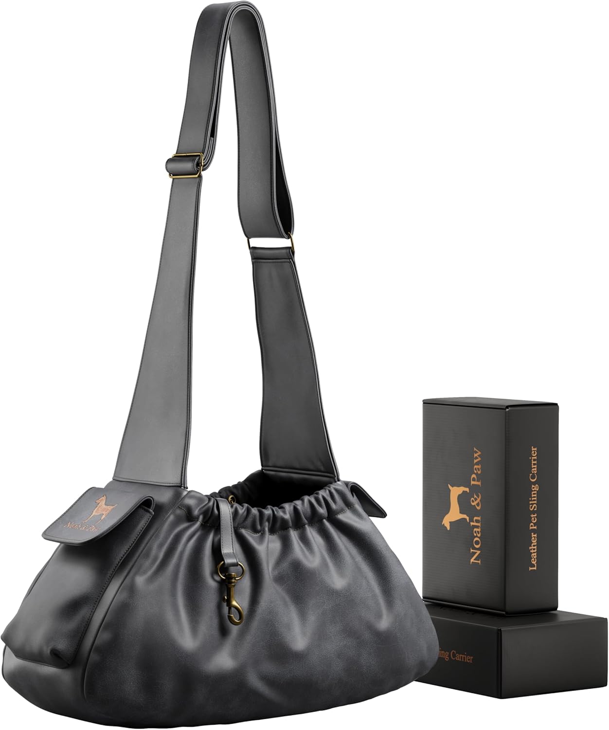 - Luxury dog sling carrier, fashioned from top-tier vegan leather. Designed with your convenience in mind, made with washable materials. This dog sling carrier combines style and practicality, to meet all your expectations.
