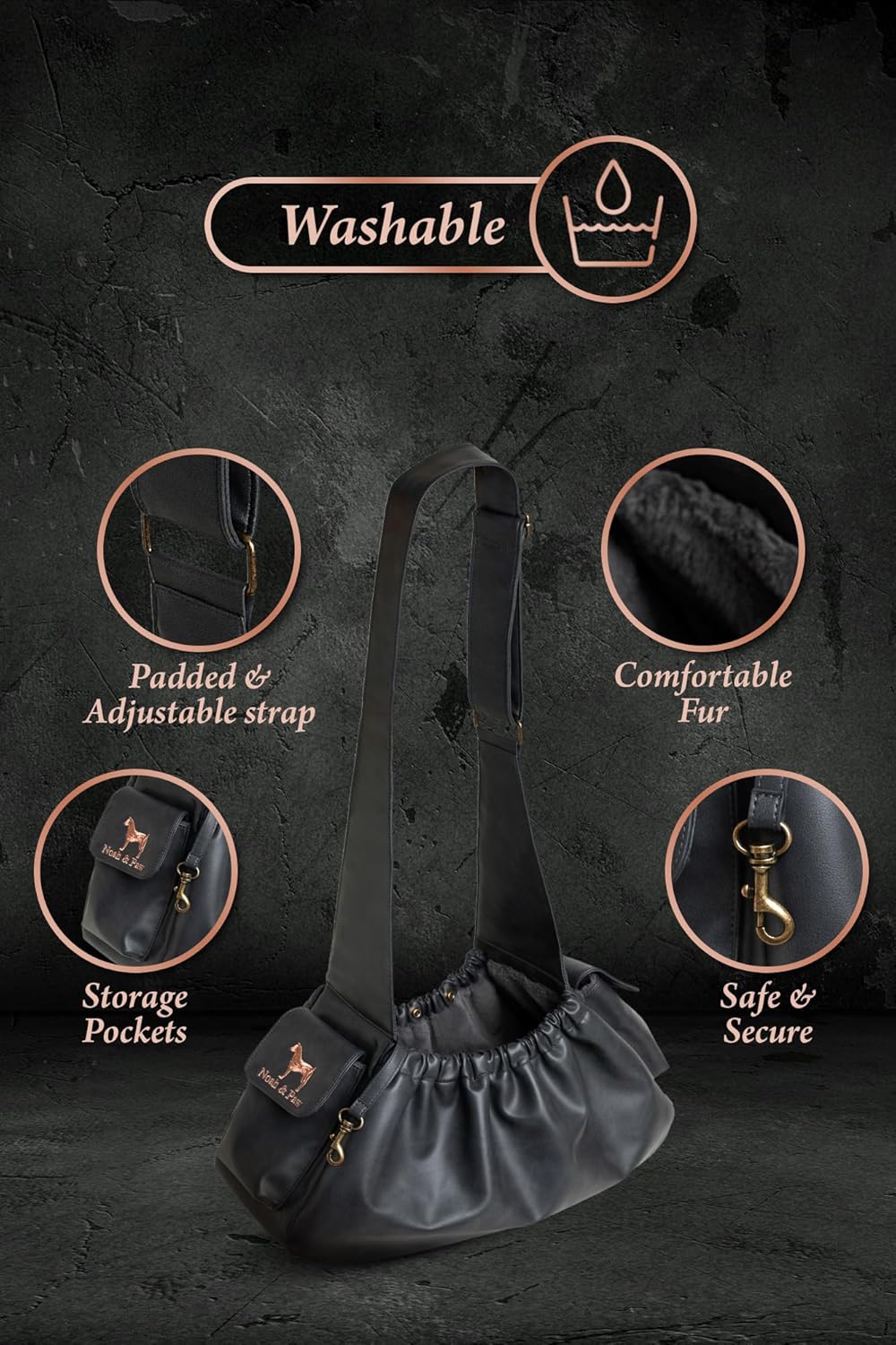 Noah & Paw Dog Sling Carrier for Small Dogs 5-18lb, Dog Sling for Small Dogs and Cats, Dog Carrier with Adjustable Padded Strap, Vegan Leather Lined with Fur, Double Safety Feature, Machine Washable