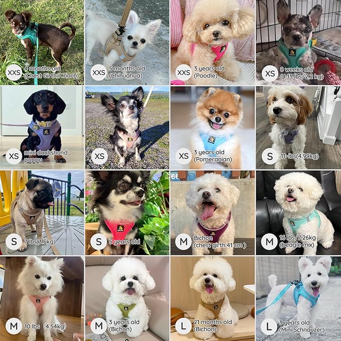 - 【Breathable Air Mesh】The puppy harness are made with soft mesh fabric, it’s lightweight but sturdy, easy to clean and quick-dry. The step in harness design make the pulling pressure distributed to the body to prevent choking.