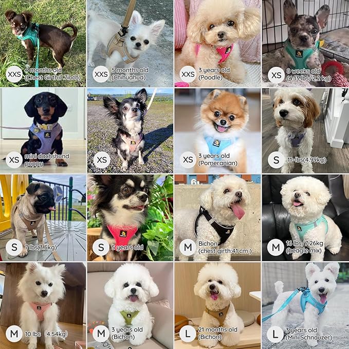 - 【Breathable Air Mesh】The puppy harness are made with soft mesh fabric, it’s lightweight but sturdy, easy to clean and quick-dry. The step in harness design make the pulling pressure distributed to the body to prevent choking.