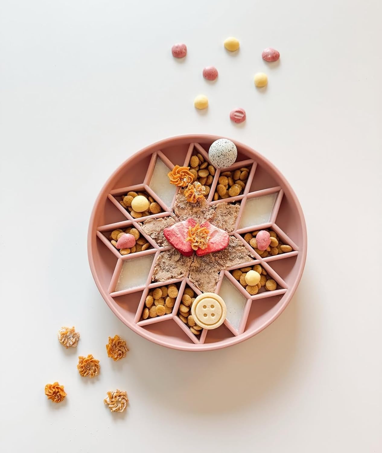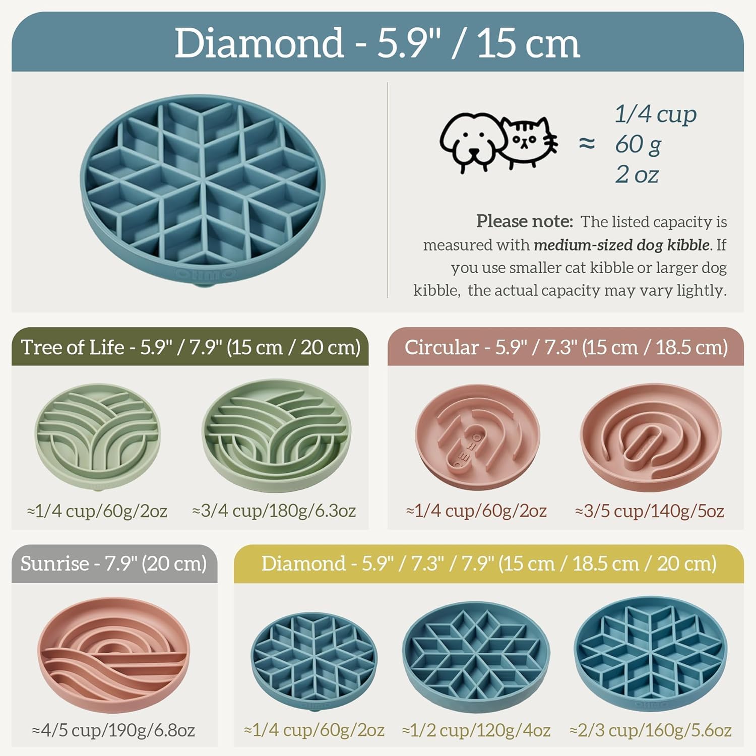 OHMO Slow Feeder Dog& Cat Bowl, Silicone Puppy Cat Food Bowl with Anti-Slip Suction Cup Slow Down Small Dogs Eating, Anti Choking (S-Diamond,Coral)
