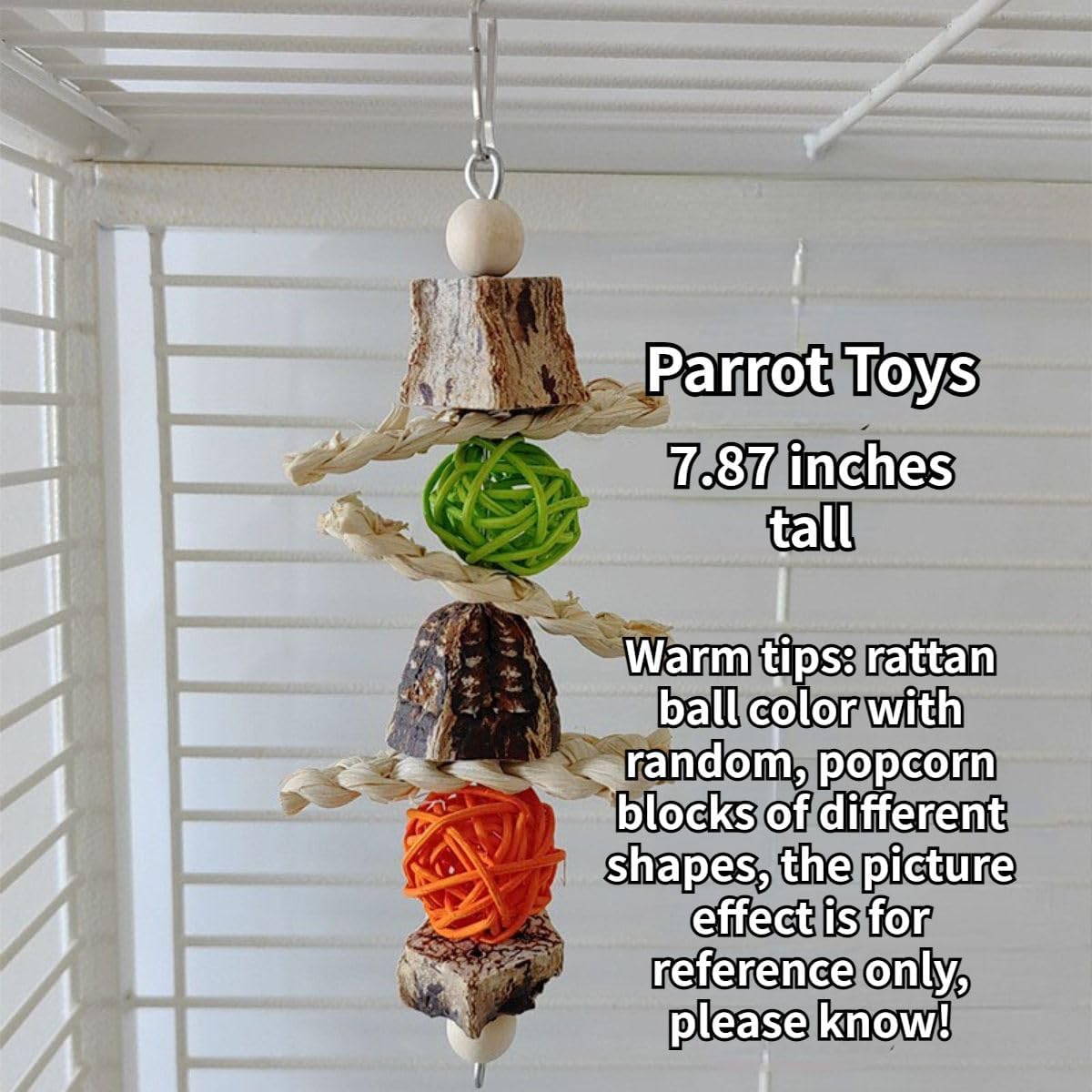 Parrots Chewing Toy Wood Block Nut Rattan Ball Corn Husk with Hanging Hook Entertainment Toy Wood Bird Toy for Parrots Chewing Block Cage Toy Accessories for Cockatiel Parakeets Random Color (2 Pcs)