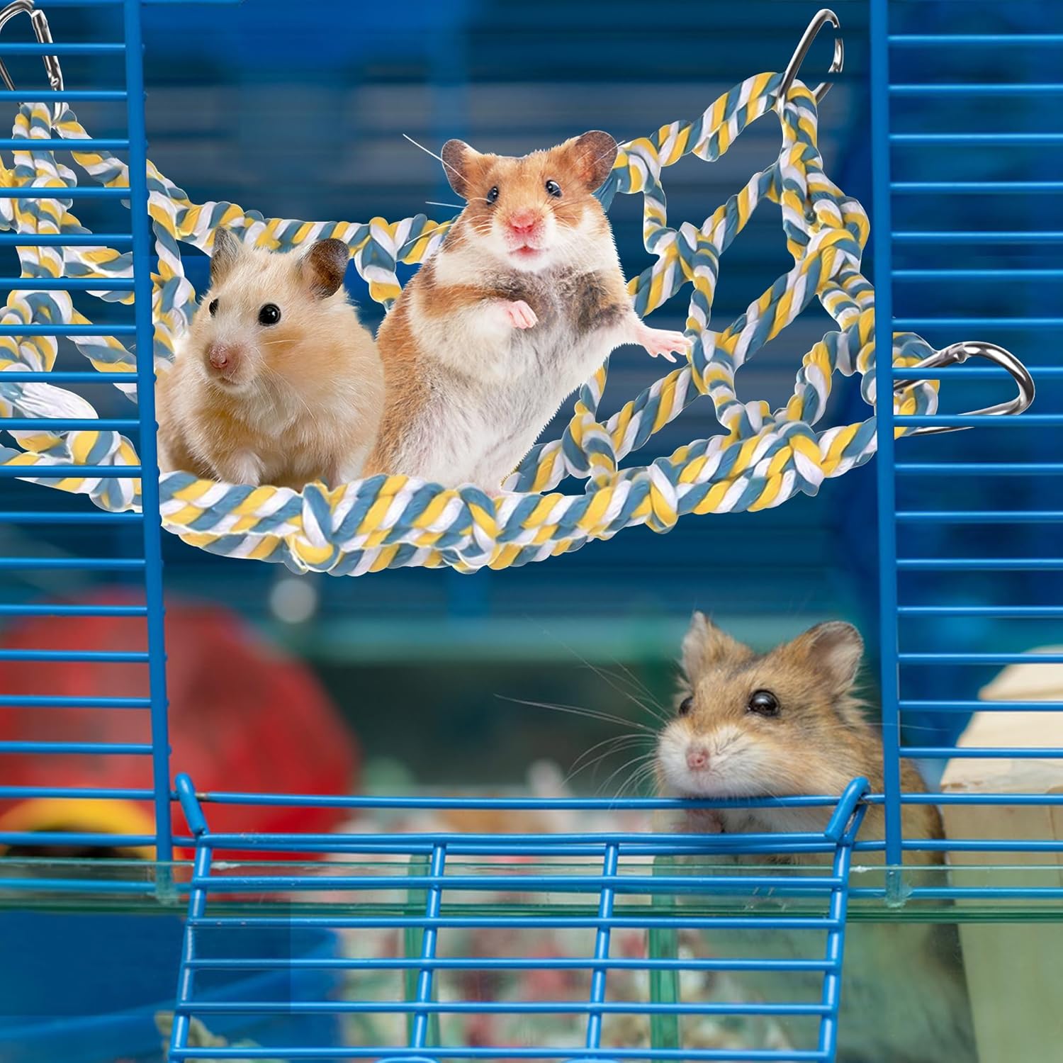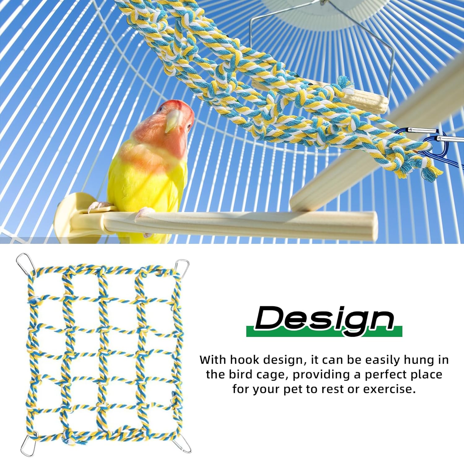 - Wide Application:Ideal for a variety of pets including birds, parrots, lovebirds, mice, hamsters, cockatiels, chinchillas, ferrets, sugar gliders, squirrels, and more. This colorful climbing rope net provides a fun and functional addition to any small animal cage.