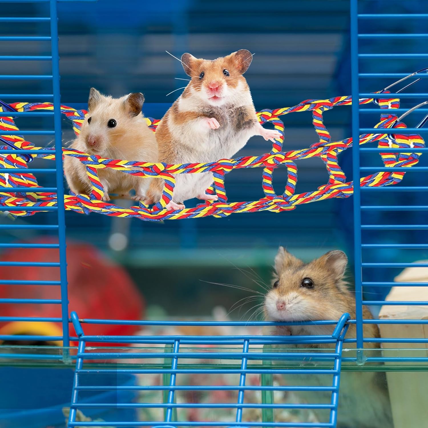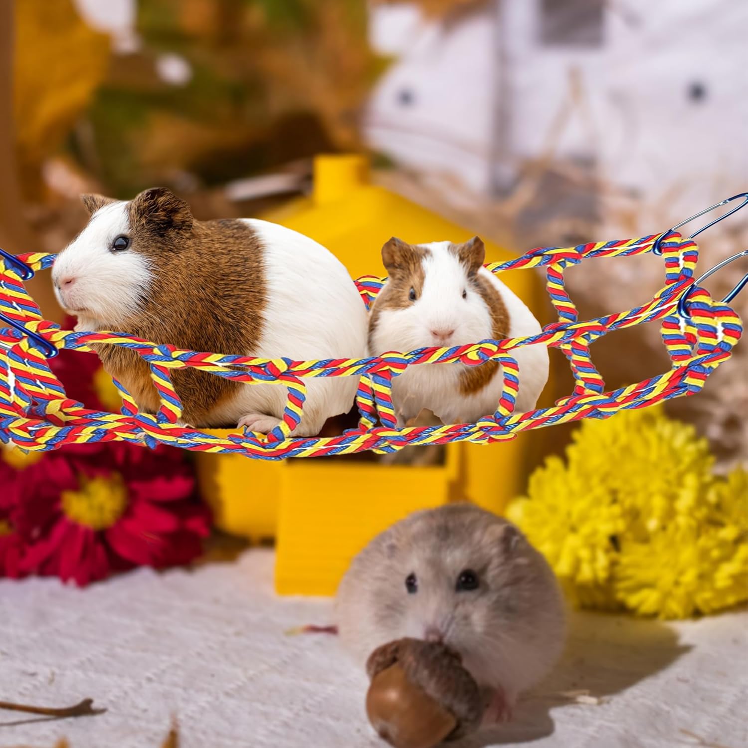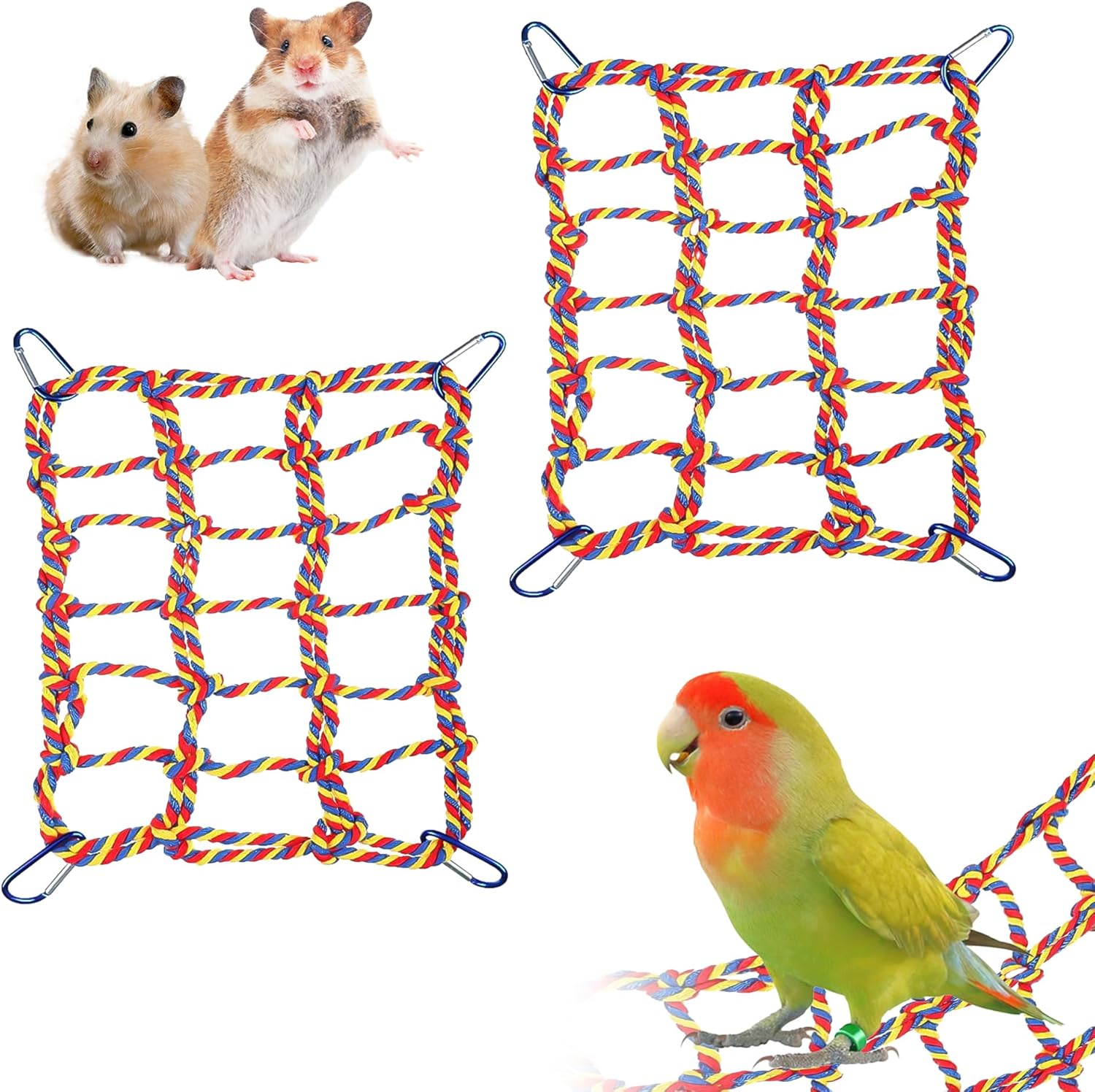 - Wide Application:Ideal for a variety of pets including birds, parrots, lovebirds, mice, hamsters, cockatiels, chinchillas, ferrets, sugar gliders, squirrels, and more. This colorful climbing rope net provides a fun and functional addition to any small animal cage.