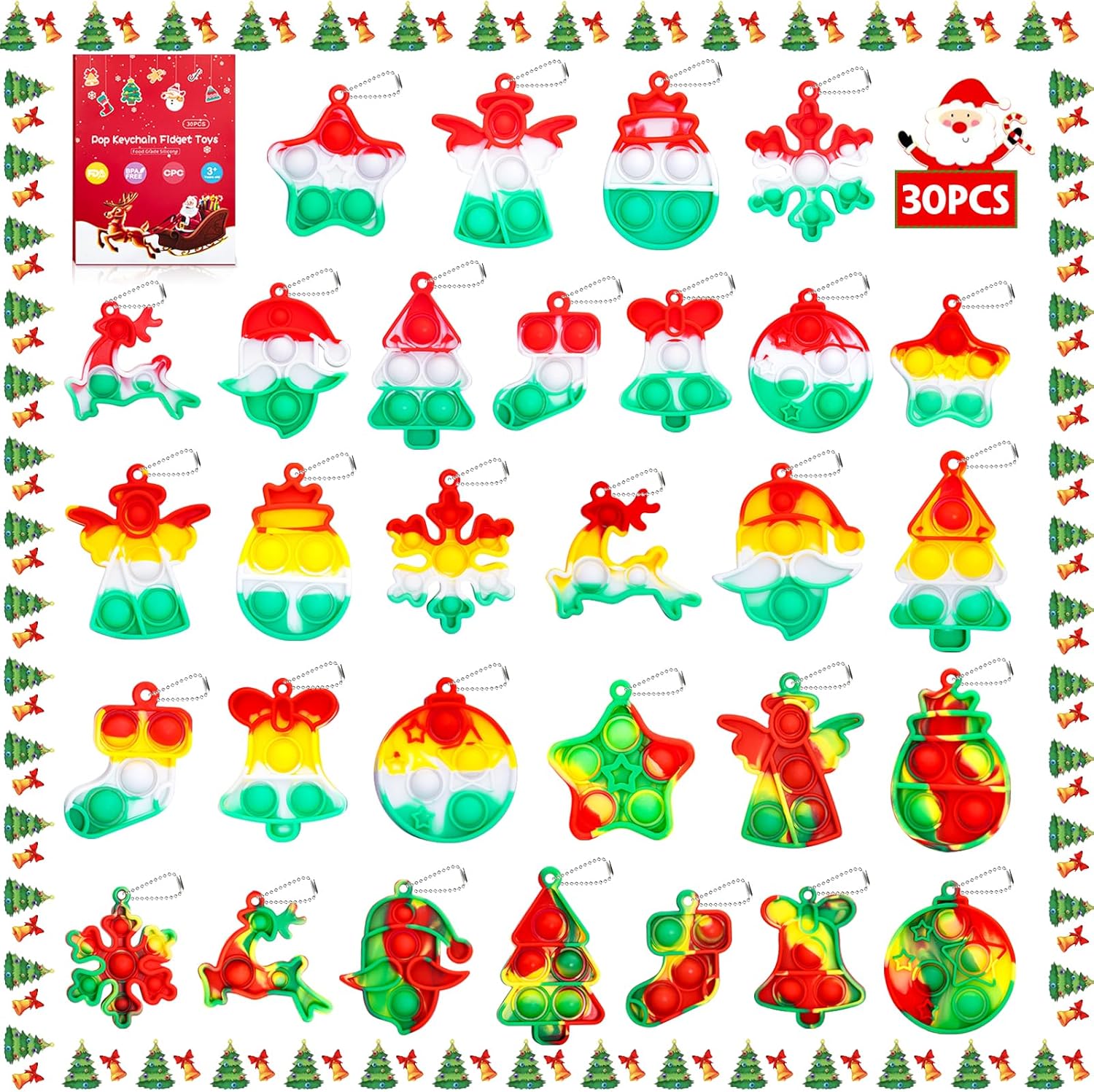 Christmas Pop Fidget Toys Bulk Its Christmas Party Favors for Kids 30 Pack Mini Pop Keychain It Stocking Stuffers for Kids Goodie Bag Stuffers Fidgets for Classroom Prizes Student Birthday Party Gifts