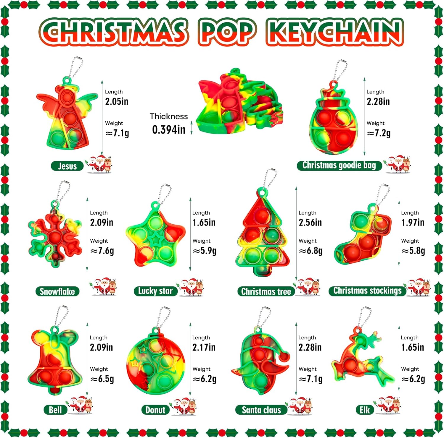 - Christmas Pop Keychain Party Favors: The most popular christmas pop toys pack, christmas fidget toys sensory toys, press the bubble to hear the pop, perfect fidget toy, easy to carry around can always take it out and play to relieve stress. Christmas goodie bag filler, kids goodie bag stuffers, goodie bag stuffers for kids 8-12, christmas goodie bag fillers bulk, christmas stocking stuffers for kids 8-12 bulk, small mini pop keychain, pop fidget toys, christmas party supplies and decorations.