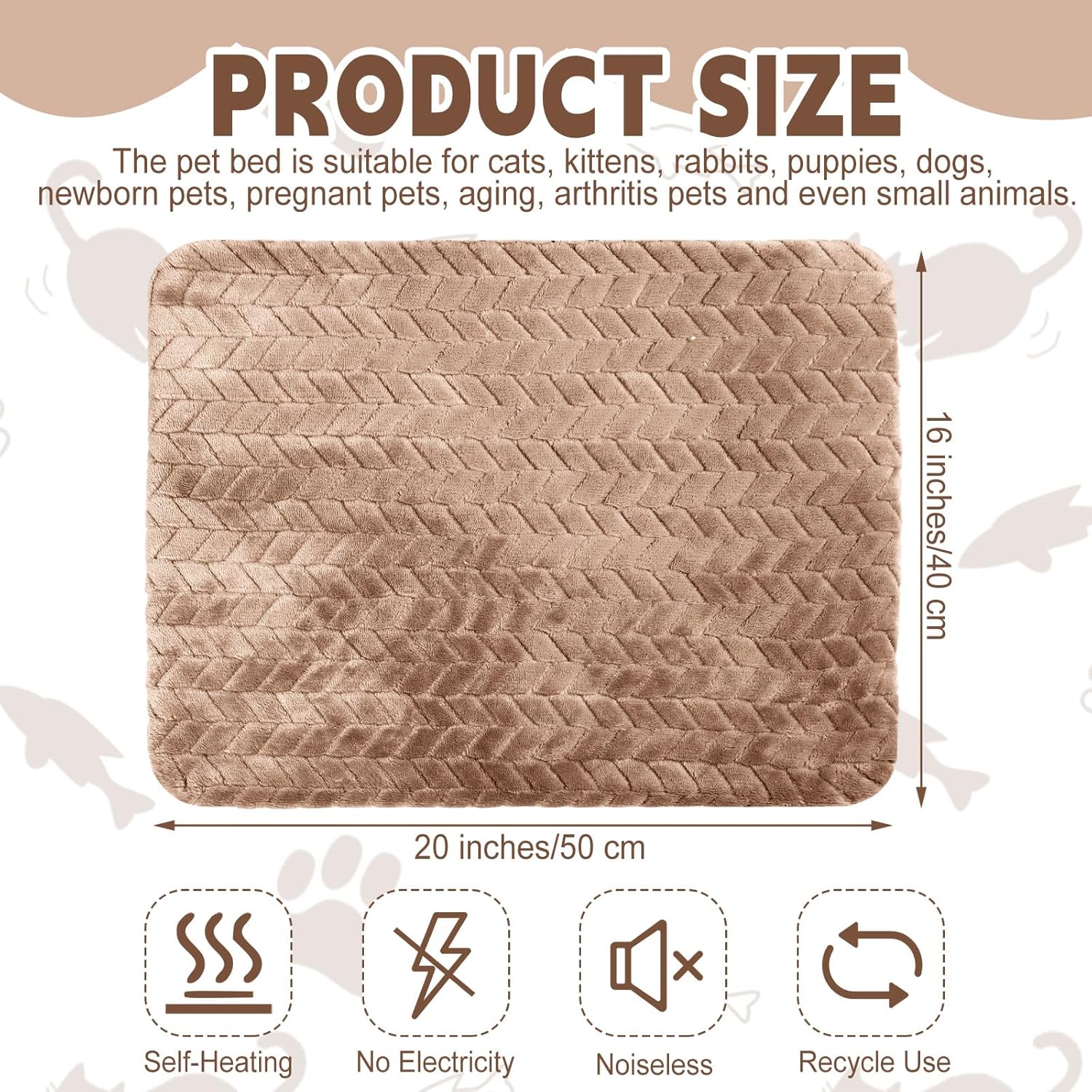 4 Pack Self Heating Cat Pad 16 x 20 Inch Self Warming Cat Bed Non Slip Warm Dog Pad Mat Washable Pet Kennel Crate Bed Mat for Indoor Outdoor Pets(Camel,16 x 20 Inch)