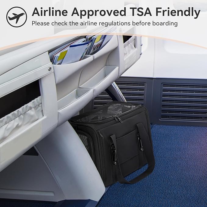 - Airline Approved: To fit under airline seats, airlines only allow small dogs and cats. We recommend tsa approved pet carriers for pets measuring 18”L x 11”W x 11”H and weighing under 9 lbs. Before purchasing, please check the size. Do not choose your carrier only based on weight. Reference your pets' length and height in selecting size