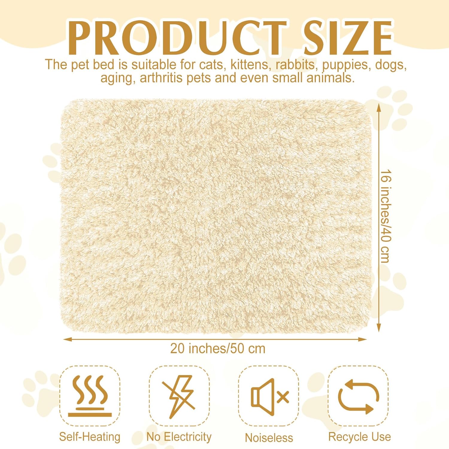 - Proper Size: you will receive 4 pack self heating cat pads in beige, each size is about 16 x 20 inches/ 40 x 50 cm, ideal for kittens, cats, puppies, dogs, aging and arthritic pets, can be applied on sofas, floors, pet beds, cat perches, pet carriers and outdoor cat houses; The cat warming pads are also ideal gifts for your friends who have pet