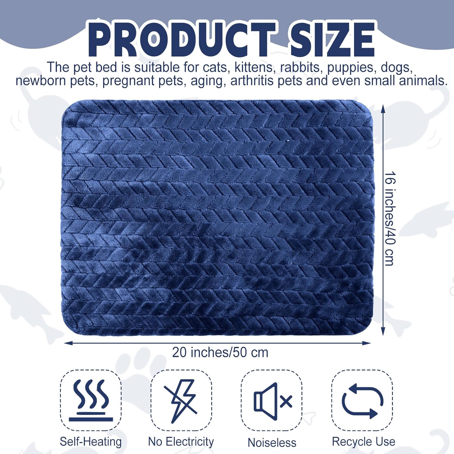 4 Pack Self Heating Cat Pad 16 x 20 Inch Self Warming Cat Bed Non Slip Warm Dog Pad Mat Washable Pet Kennel Crate Bed Mat for Indoor Outdoor Pets(Navy Blue,16 x 20 Inch)