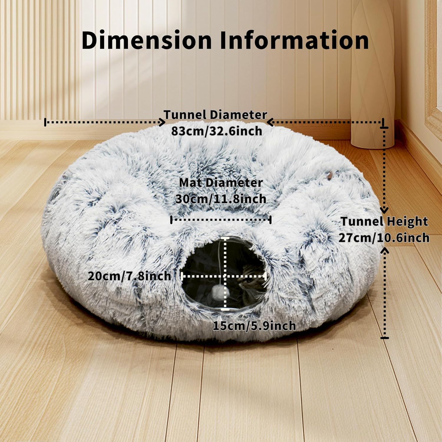 - Luxurious and Soft Materials: Our cat donut tunnel made of soft, breathable and comfortable plush with soft lining. The round mattress is washable that keep a clean environment. The high-quality materials ensure durability, providing softness and warmth. Widened tunnel is suitable for all pet sizes.