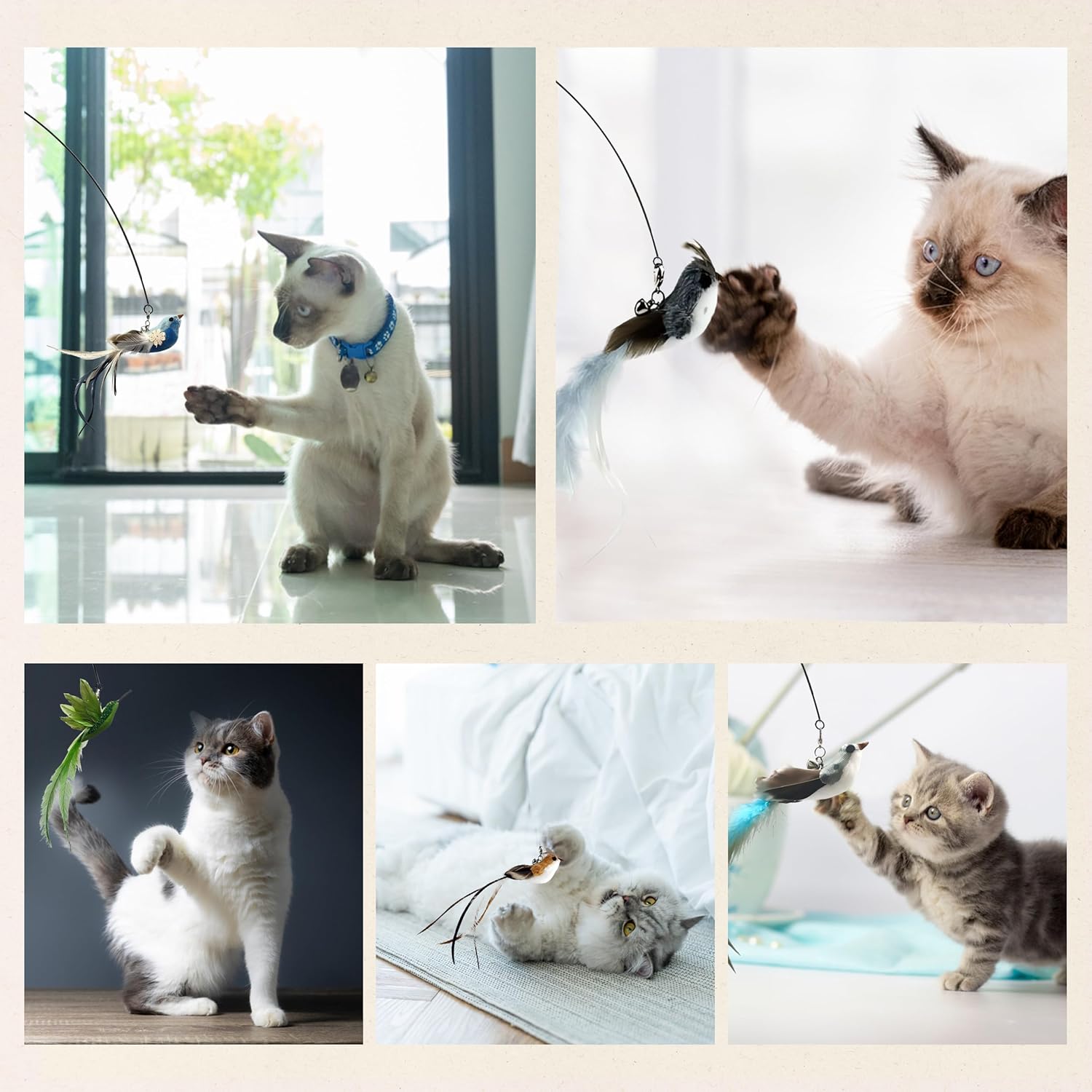 - Boost Your Cat's Well-being: Keep your cat active, entertained, & stress-free with our interactive bird toy set; mimics real-life bird movements, engaging your cat’s instincts. Designed to replicate the intriguing movements of birds, this toy set not only combats boredom but also provides vital exercise & mental stimulation for indoor cats. Watch as your feline friend enjoys jumping, pouncing, & swatting, fostering both physical health & mental well-being, ensuring a happier, more fulfilled pet.