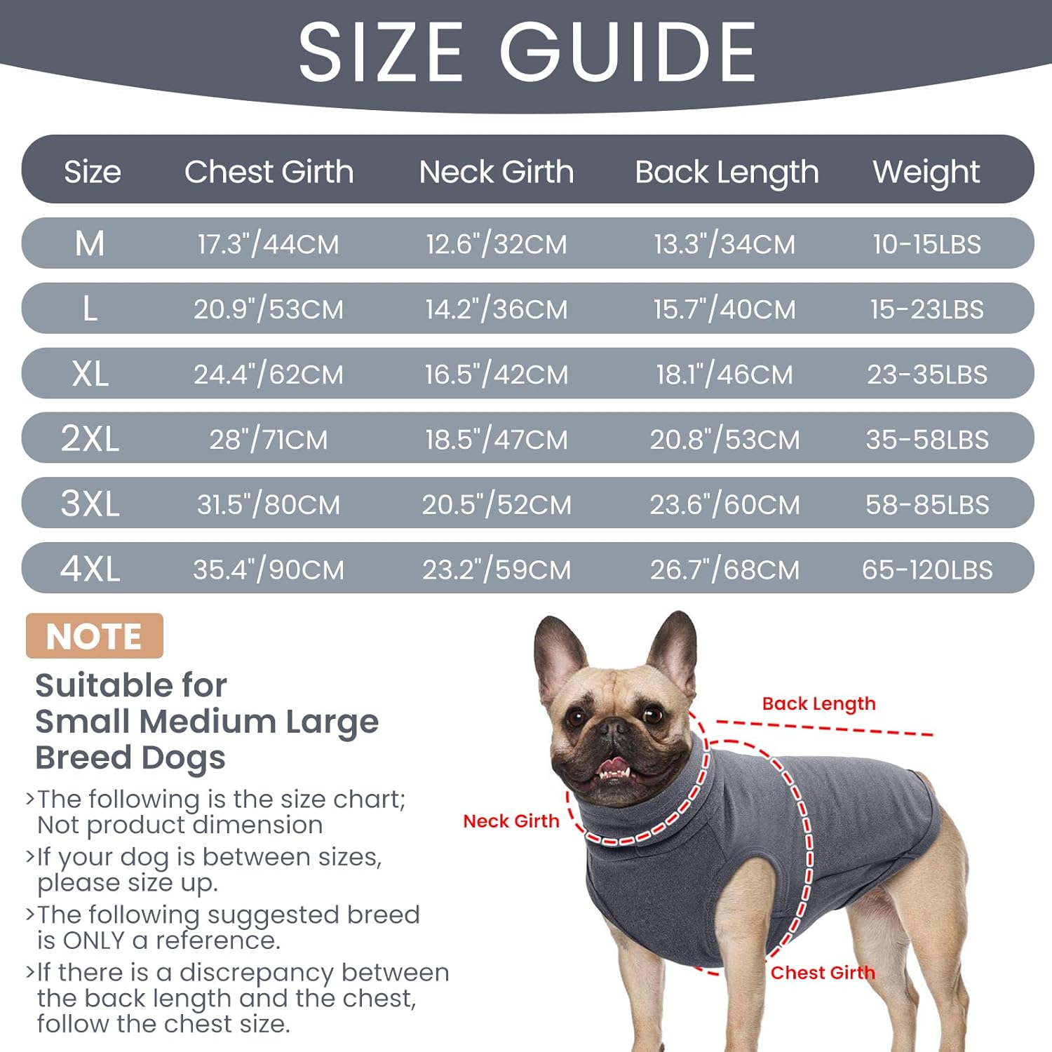 ROZKITCH Dog Sweaters Soft Fleece Pullover Sweatshirt Pajamas, Turtleneck Warm Pet Cold Weather Jacket Stretchy Vest Jumpsuit Apparel Outfit Clothes for Small Medium Large Dogs Walking Sleep Grey L