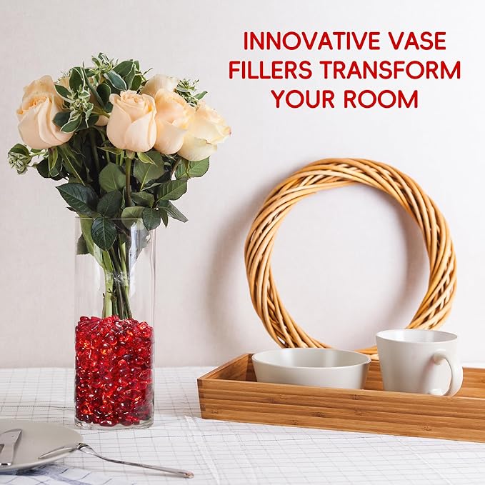 Meschett Colorful Glass Stones, 0.97 LB Fish Tank Gravel, Small Irregular Rainbow Aquarium Gravel for Aquarium Decorations and Turtle Tank, Sea Glass Beads Crystals for Fish Bowl, Vase Filler,Red