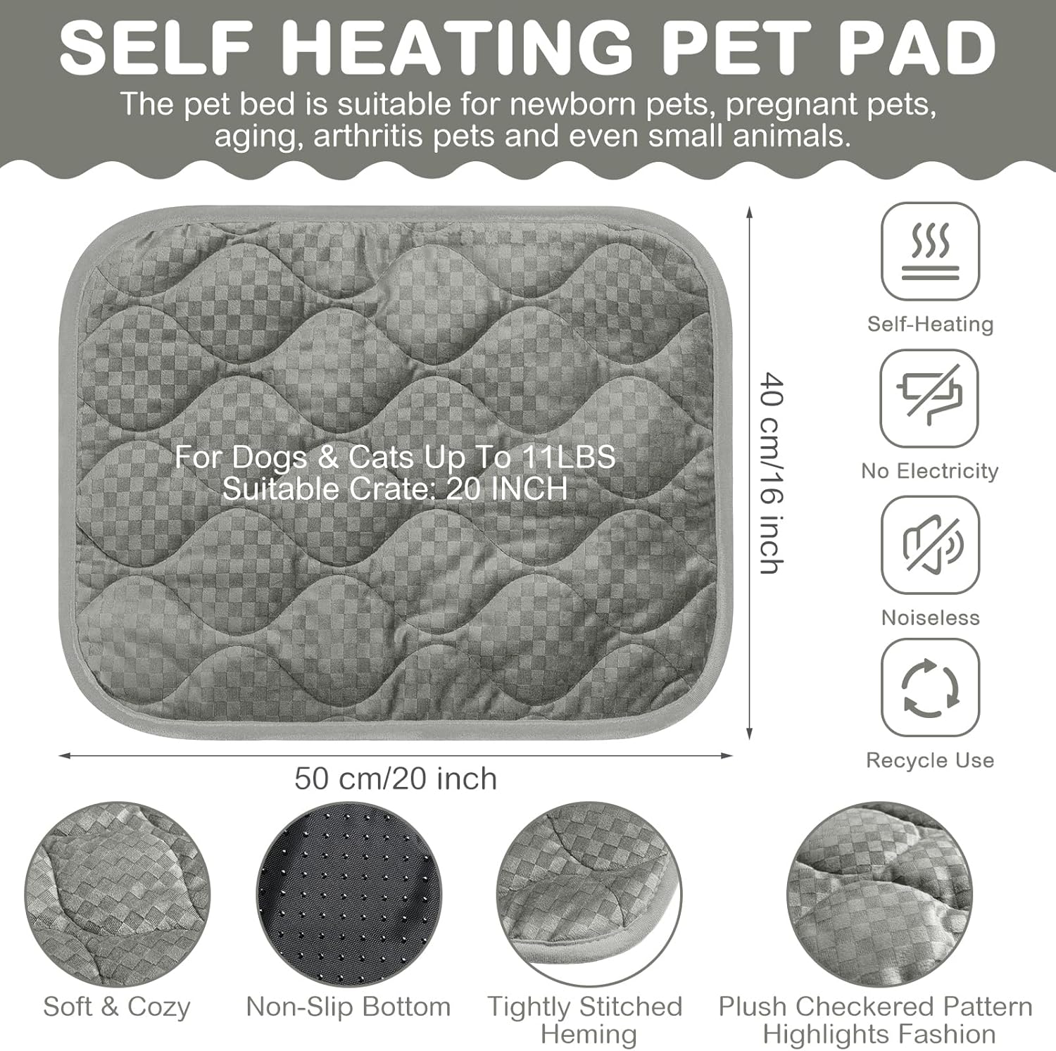 - Self Heating Technology: this self heating mat for cat can reflect and retain the pet's own heat, creates a warm surface for pets to curl up in comfort, and keeps your pets toasty warm on cold days; A safe, electricity free solution to keeping pets warm, and you don't need to worry about any kind of safety hazard or toxic smell caused by using pad