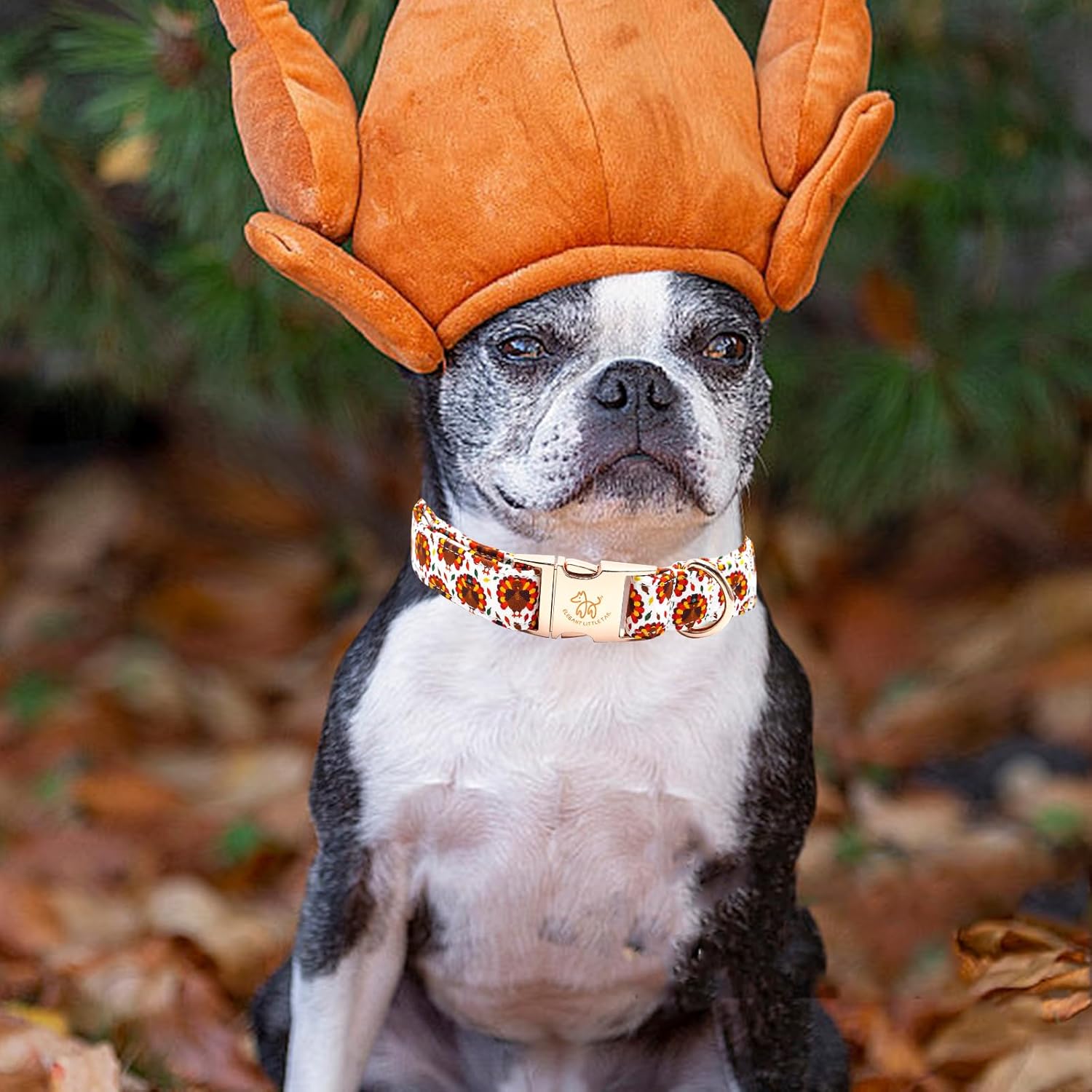 Elegant little tail Thanksgiving Dog Collar, Turkey Print Pet Collar Dog Durable Cute Dog Collars Winter Holiday Male or Female Pet Gift Adjustable Dog Collar for X-Large Dogs