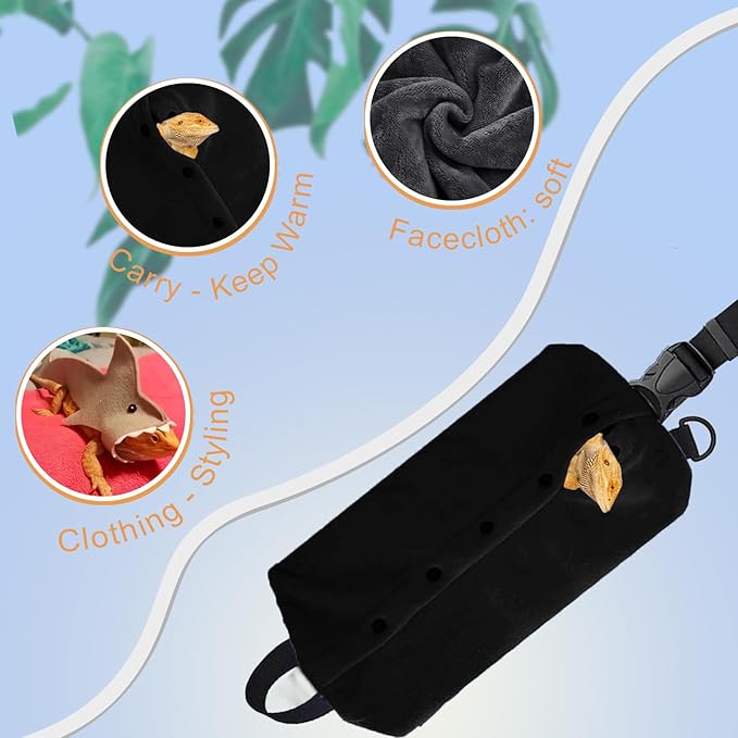 - 【Comfortable Fabric】Our bearded dragon travel carry is made of soft and breathable coral fleece, ensuring your pet's comfort and safety during travel. The bearded dragon leash is made of high-quality leather and durable nylon rope, which is soft, lightweight, and won't cause any harm to your pet's skin