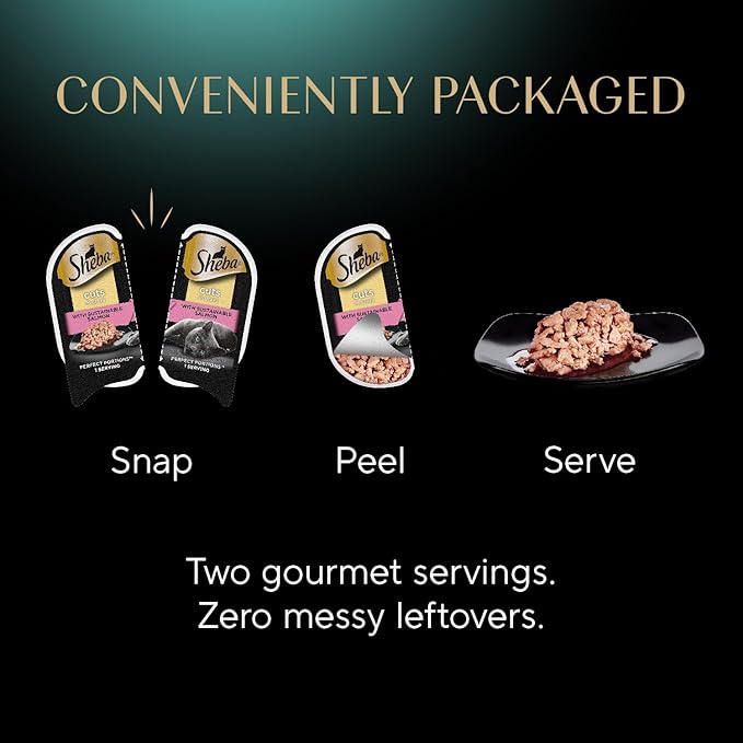 - Easy-to-Serve: Just snap, peel, and serve Sheba Perfect Portions Wet Cat Food