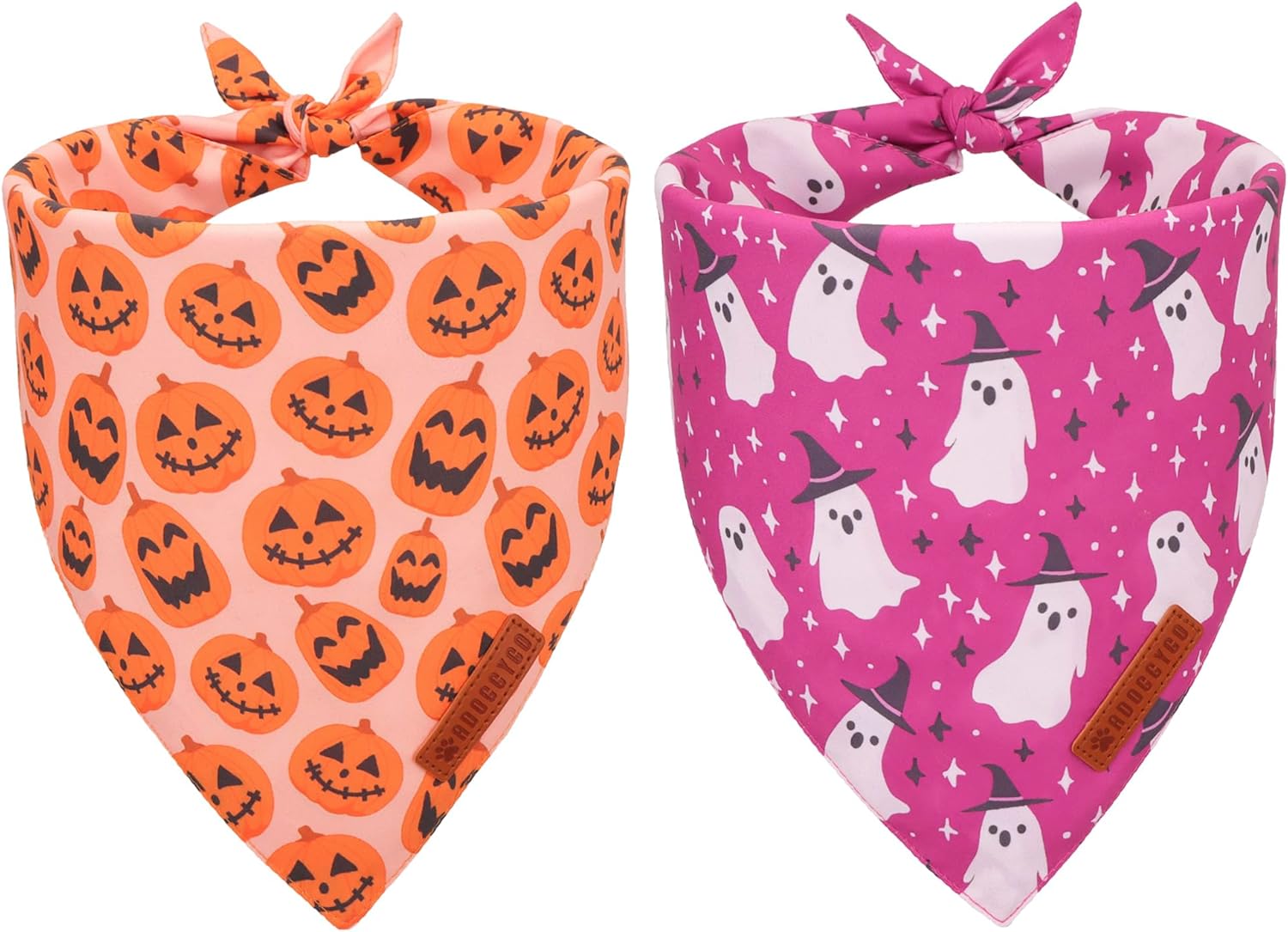ADOGGYGO Halloween Dog Bandana, Pumpkin Ghost Pet Scarf, Premium Durable Fabric, Adjustable Fit Halloween Bandanas for Small Dogs Pets (Small)