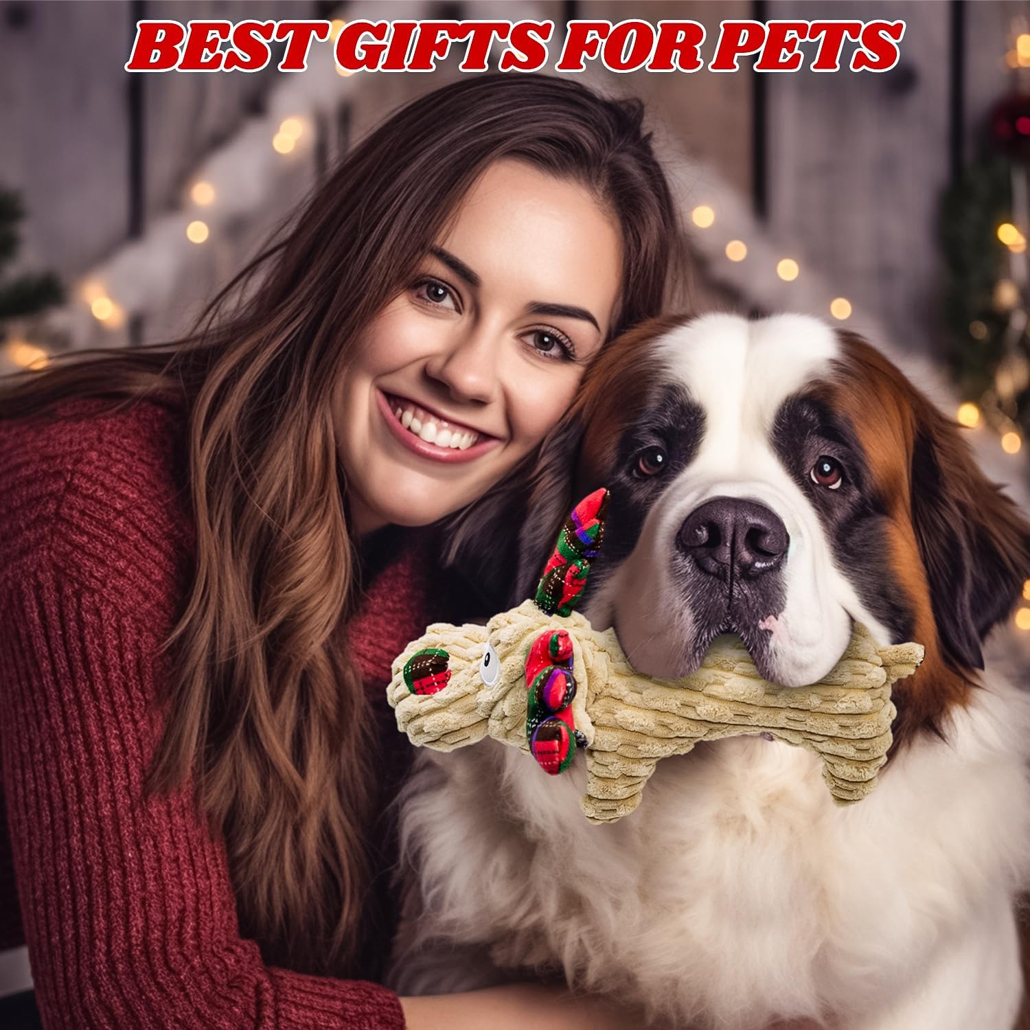 - Built-in Attractive Squeakers: Dogs are highly sensitive to sound. Our Christmas squeaky toy built in squeakers thoughtfully distributed throughout the toy, can effectively arouse the interest of the dogs and stimulate their desire to play. A vocal bladder in the head and crinkle paper on the tail, which emits sound when pets bite and greatly increases your dog's interest in playing with the toy