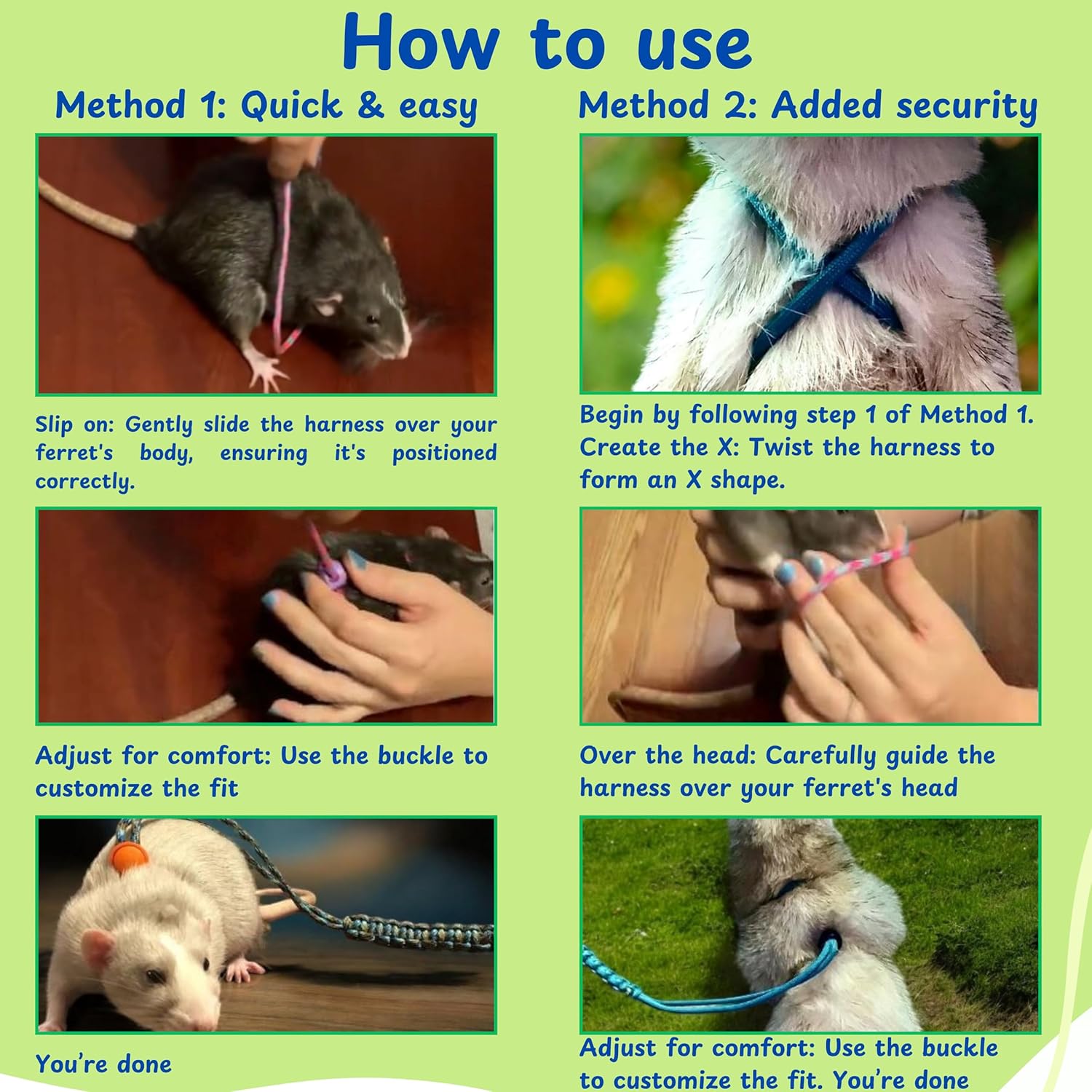- Comfortable design for all-day wear: This lightweight squirrel harness, small animal harness is designed for maximum comfort, allowing your ferret to move freely without feeling restricted.The adjustable straps of ferret supplies ensure a suitable fit that won't dig or chafe, keeping your little ferret happy and comfortable throughout your outdoor adventures by this ferret accesorios, pet mice accessories.