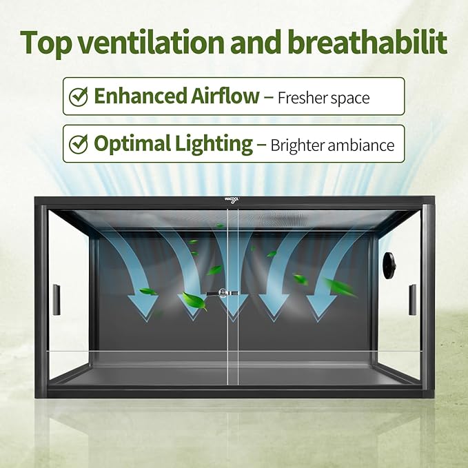 - 【Durable and Easy Assembly】Lightweight yet sturdy, the Wacool Terra reptile terrarium can be assembled in just six steps. The stackable design helps you save space, while the silicone-sealed base improves strength for secure, long-lasting use. Ideal for reptile enthusiasts seeking convenience and reliability.
