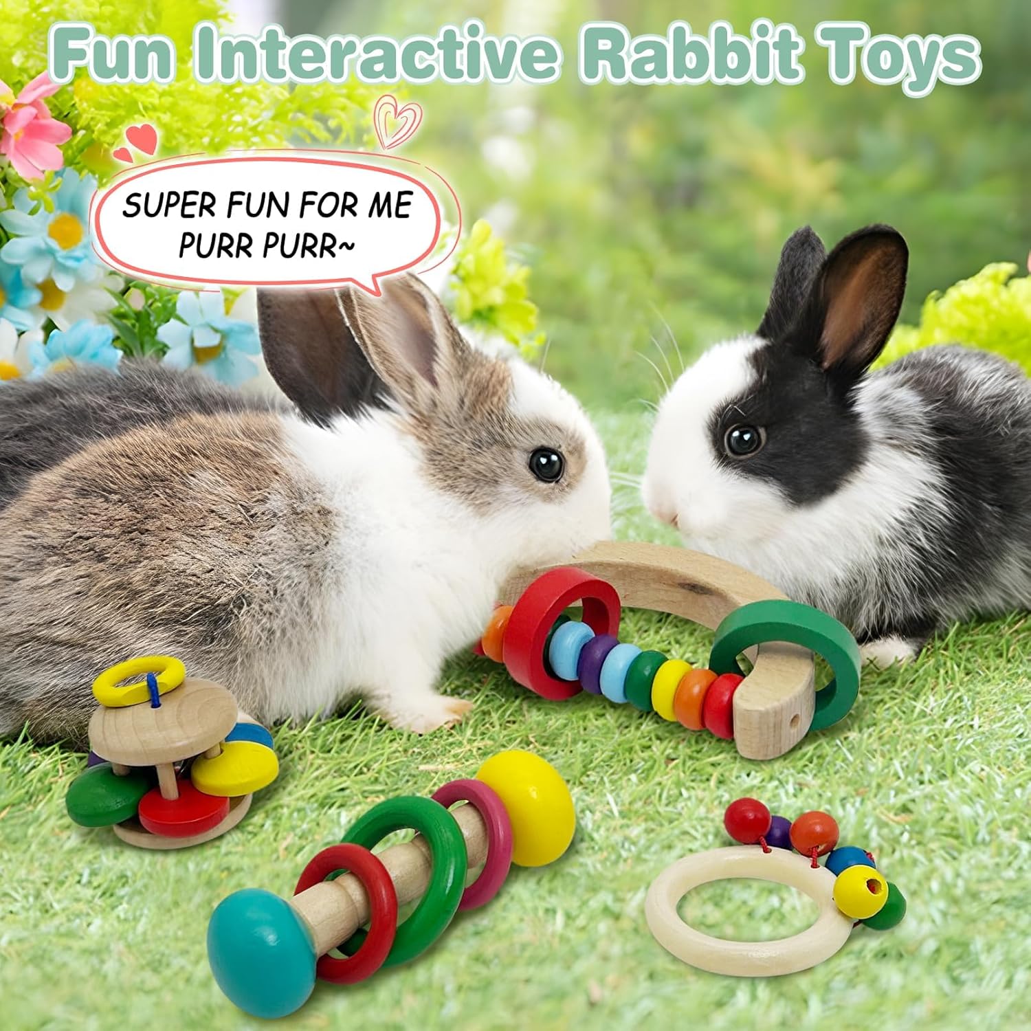 - Safe & Durable Metarial: Our rabbit toys are made of wood, finely sanded, sturdy and durable, won't hurt your pet. Safe material bunny toys ensure a healthy living space for your pet and a happy playtime for your furry friend