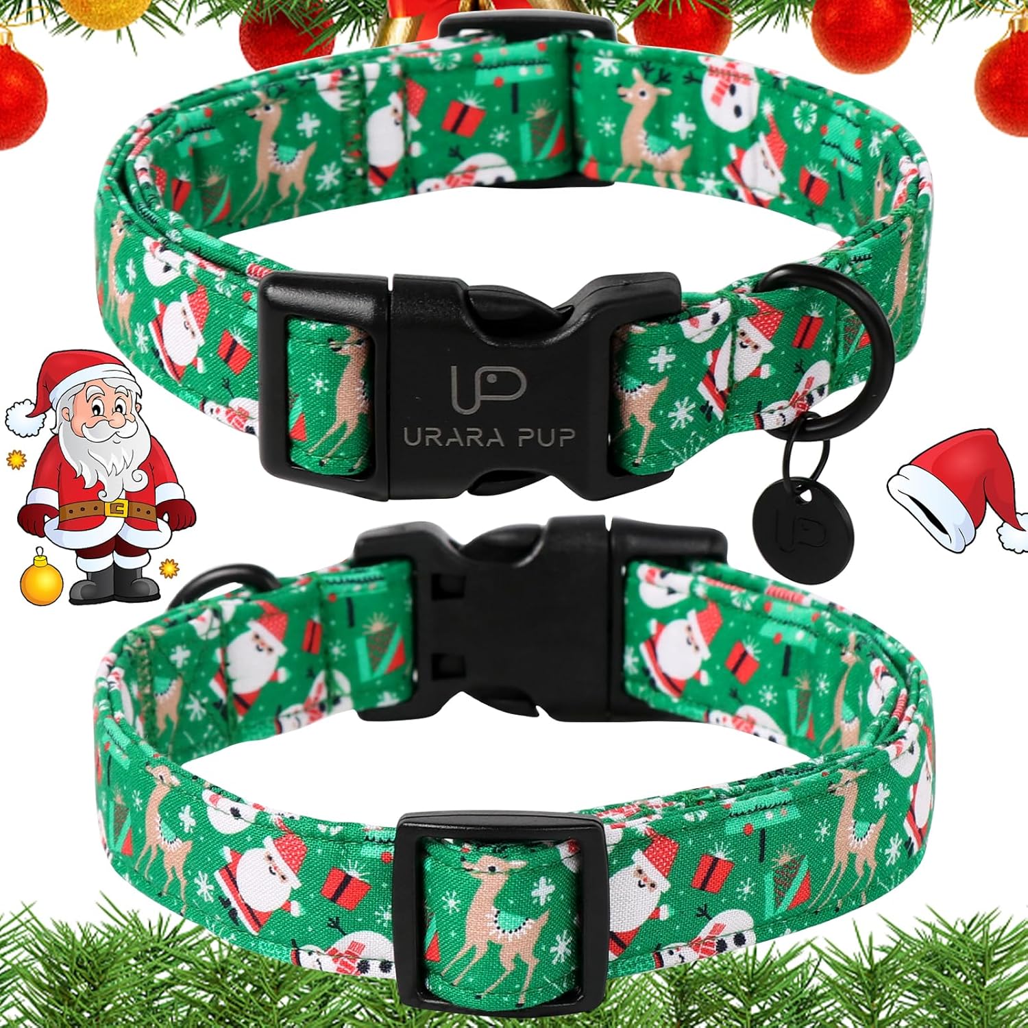 Christmas Santa Claus Dog Collar, Cute Christmas Elk Collar for Puppy Girl Boy Dog, Adjustable Green Dogs Collars for Small Medium Large Dogs