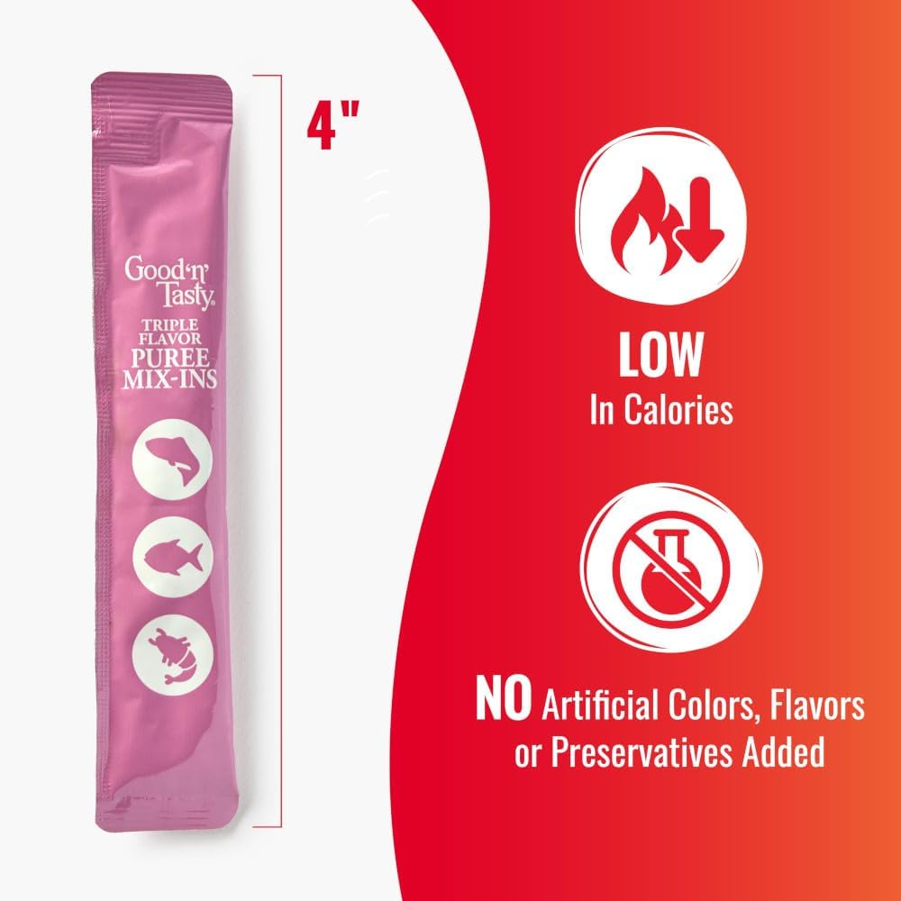 Good 'n' Tasty Triple Flavor Puree Mix-Ins Dog Food Topper Treats for All Dogs, 28 Count, Easy Single-Serve Portions, Added Protein with Salmon, Tuna and Krill, No Chicken or Beef Added
