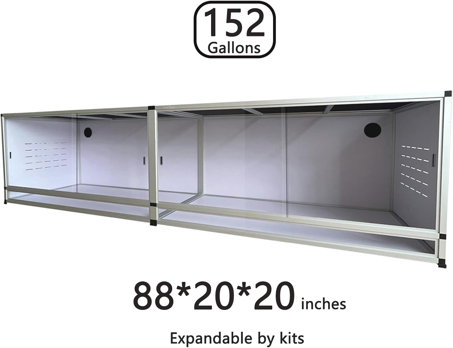 - 【Large Reptile Enclosure】 88*20*20"in dimensions, 152 gallons equivalent, this reptile tank provides adequate space for reptiles to move, explore, hide, rest, and feel secure, large enough feeding enclosure area allowing you to create and decorate a comfort habitat environment for your reptile pet