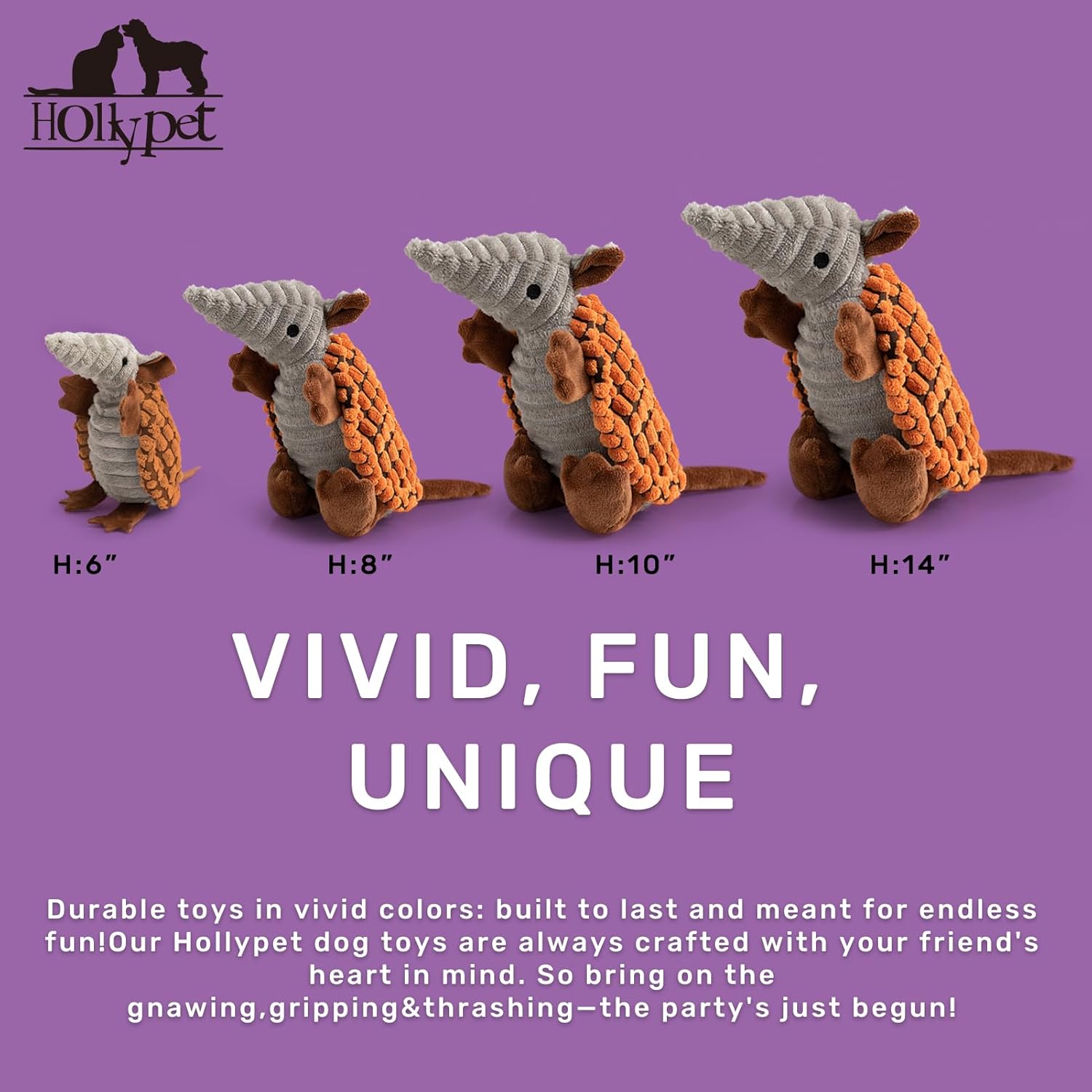 - Unique Sound - Hollypet Armadillo Squeak Toys (except 6 inch) make a sound that's not high pitched, but rather a unique and funny grunt sound that your furry friend will love. Unlike noisy bones, ropes, or other normal stuffed plush dog toys