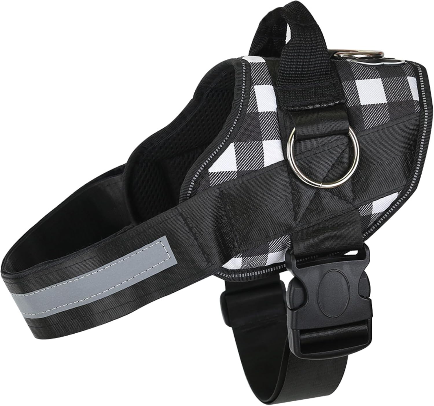 Joyride Basic Essential Dog Harness 1.0 - Small, Medium, Large Dogs, No-Pull Pet Vest with 3 Side Rings for Leash Placement, Adjustable for Training (Black & White Plaid, 2XL)