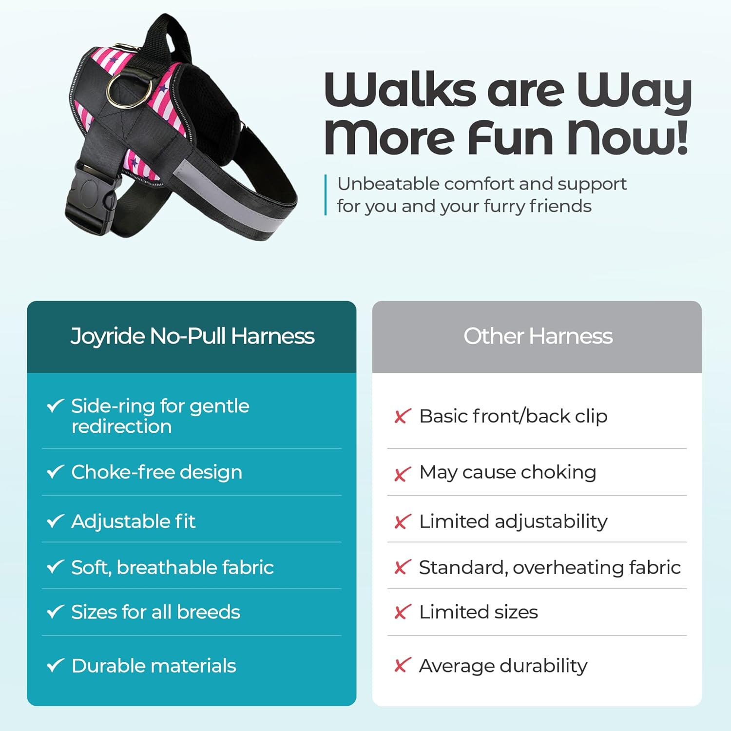 - [Unmatched Durability]: Crafted with your dog's safety at its core, and a lifetime of durability, the Joyride Harness is sturdy and built to last the test of time and energy. Featuring a sturdy Emergency Safety Handle, an advanced buckle closure system, and reflective material and stitching for added safety, our easy walk dog harness is built to ensure your adventures are safe, day or night.