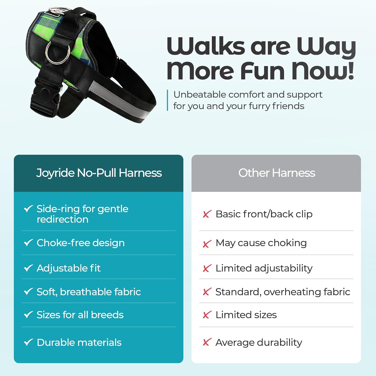 - [Unmatched Durability]: Crafted with your dog's safety at its core, and a lifetime of durability, the Joyride Harness is sturdy and built to last the test of time and energy. Featuring a sturdy Emergency Safety Handle, an advanced buckle closure system, and reflective material and stitching for added safety, our easy walk dog harness is built to ensure your adventures are safe, day or night.
