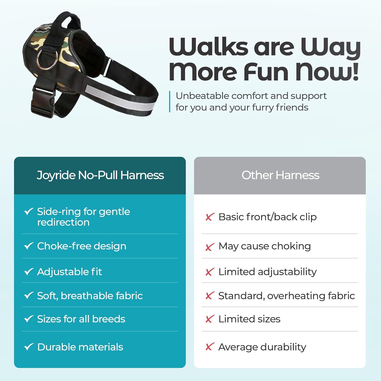 - [Unmatched Durability]: Crafted with your dog's safety at its core, and a lifetime of durability, the Joyride Harness is sturdy and built to last the test of time and energy. Featuring a sturdy Emergency Safety Handle, an advanced buckle closure system, and reflective material and stitching for added safety, our easy walk dog harness is built to ensure your adventures are safe, day or night.