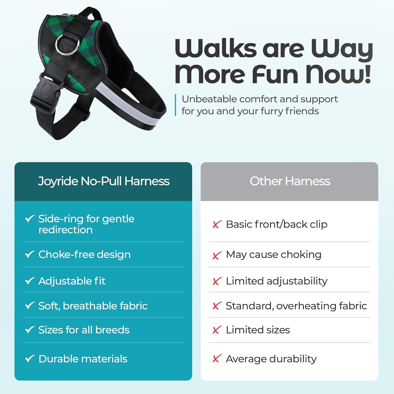 - [Unmatched Durability]: Crafted with your dog's safety at its core, and a lifetime of durability, the Joyride Harness is sturdy and built to last the test of time and energy. Featuring a sturdy Emergency Safety Handle, an advanced buckle closure system, and reflective material and stitching for added safety, our easy walk dog harness is built to ensure your adventures are safe, day or night.