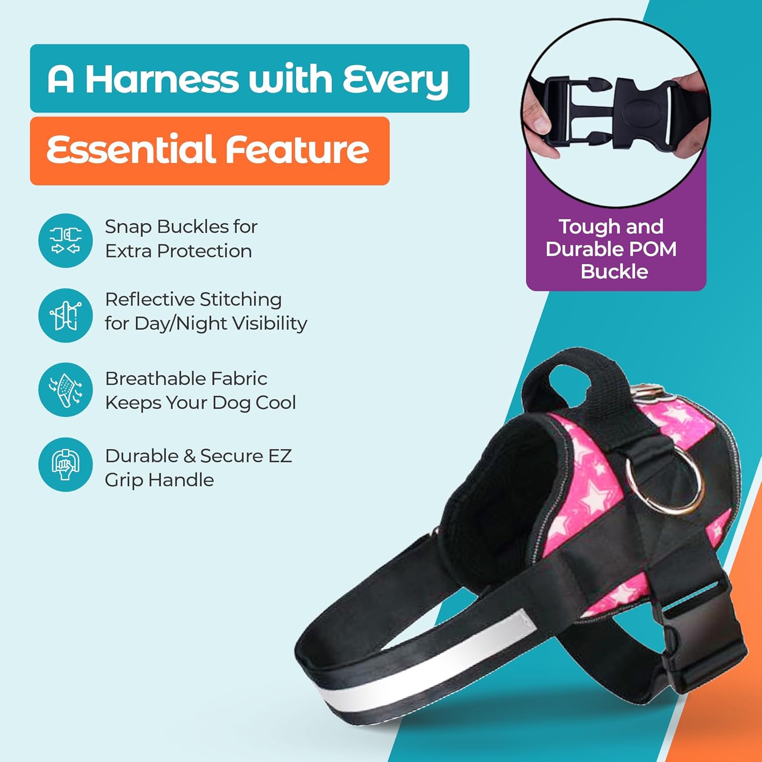 - [Unmatched Durability]: Crafted with your dog's safety at its core, and a lifetime of durability, the Joyride Harness is sturdy and built to last the test of time and energy. Featuring a sturdy Emergency Safety Handle, an advanced buckle closure system, and reflective material and stitching for added safety, our easy walk dog harness is built to ensure your adventures are safe, day or night.