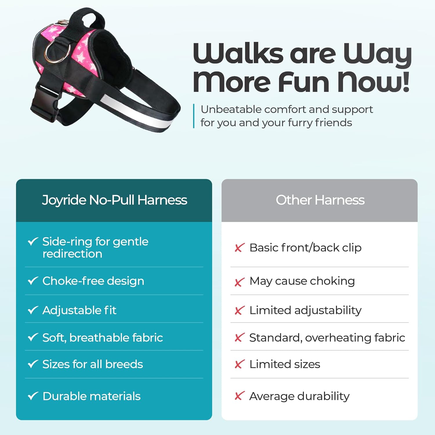 - [Fits All Dog Breeds]: Designed with every dog in mind, the Joyride Harness caters to your dog's comfort and control needs, regardless of their size. From the lightweight small dog harness to the robust harness for large dogs, this durable pet vest is the go-to choice for walks, training, or a joyous run in the park. Experience the ease of walking your dog with our versatile harness. Dual adjustable in 2 places for the perfect fit, every time.