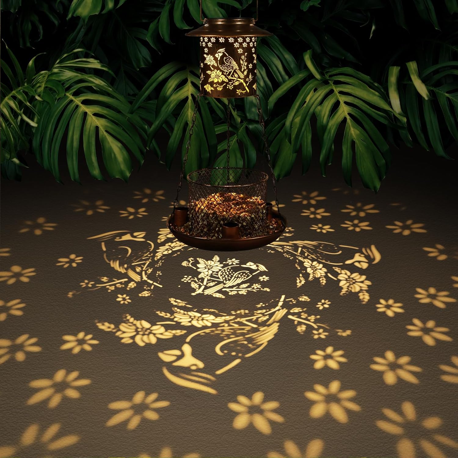 - 【Exquisite Hummingbird Feeder】It is not only a bird feeder for outdoors hanging, but also a Solar garden lantern at night.The light shines through the hollow pattern, adding a beautiful breath, Nice present for bird lovers and Beautiful decoration for your garden or backyard, it's a great gift for your relatives and friends