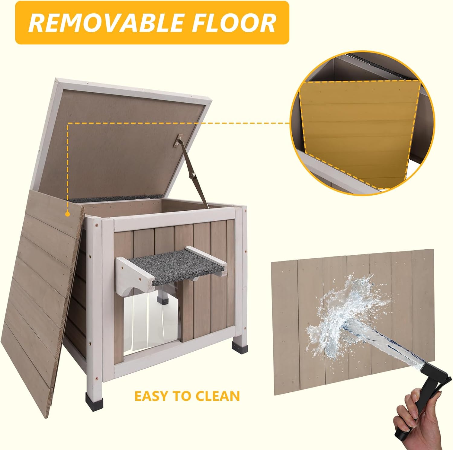 - 【High-quality Materials & Removable Floor】The cat shelter is made of natural materials, which is sturdy and durable, it is an ideal home for your cats. The removable floor makes it easier for you to clean the cat house, avoiding the impact of unclean cleaning on the health of your pets.